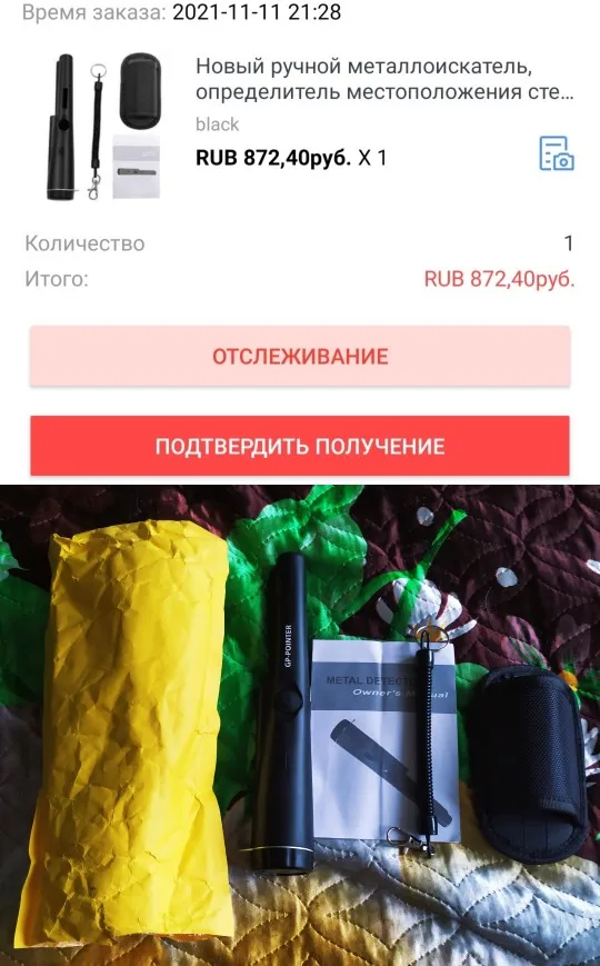 Доставка быстрая, отслеживается. Прибор работает, чувствительность слабая. Хорошо работает на крупные объекты - диаметром с 2 см.