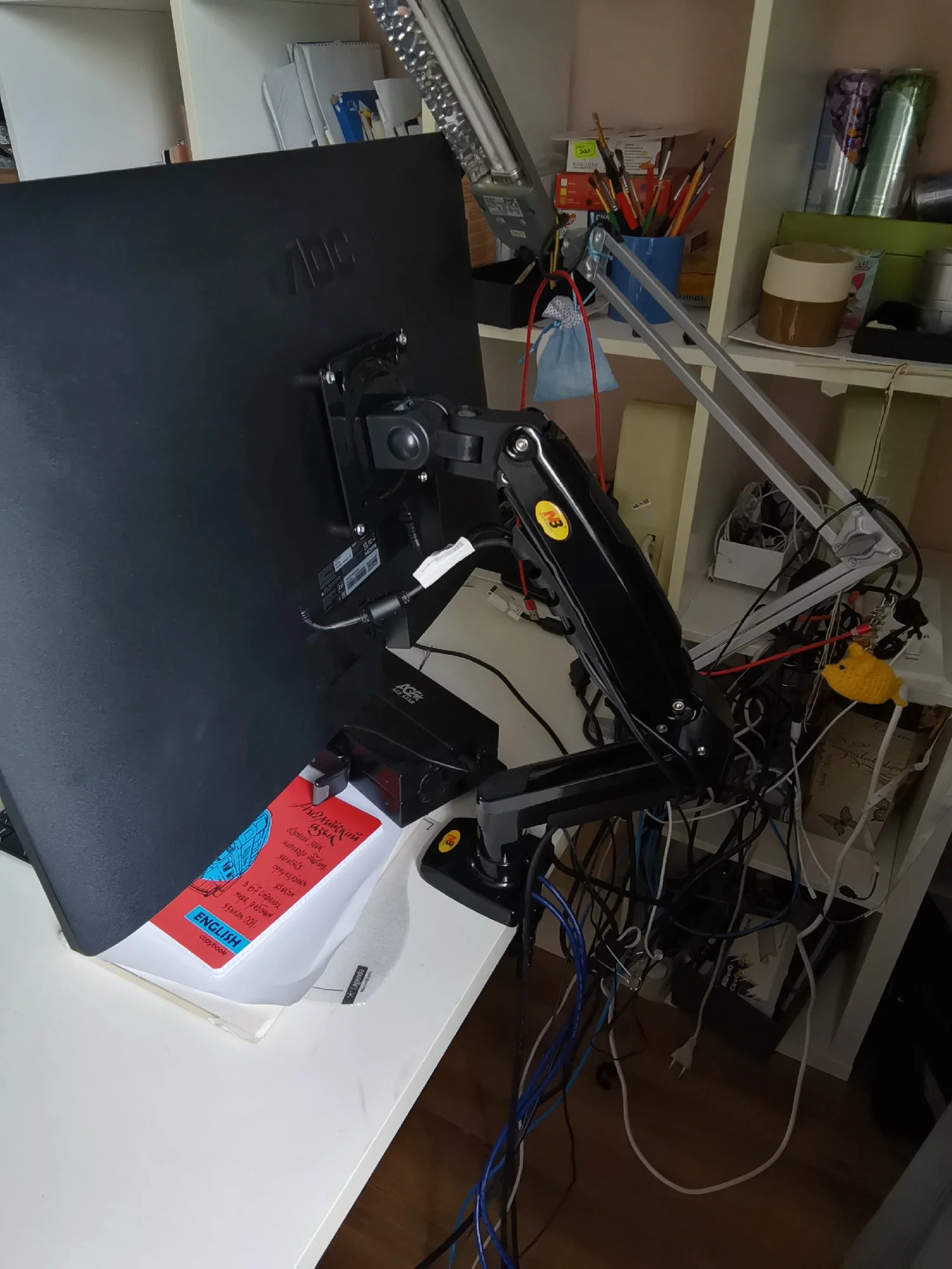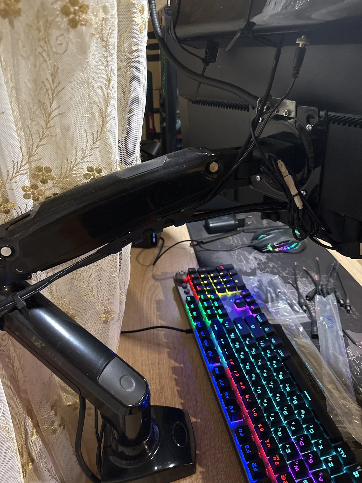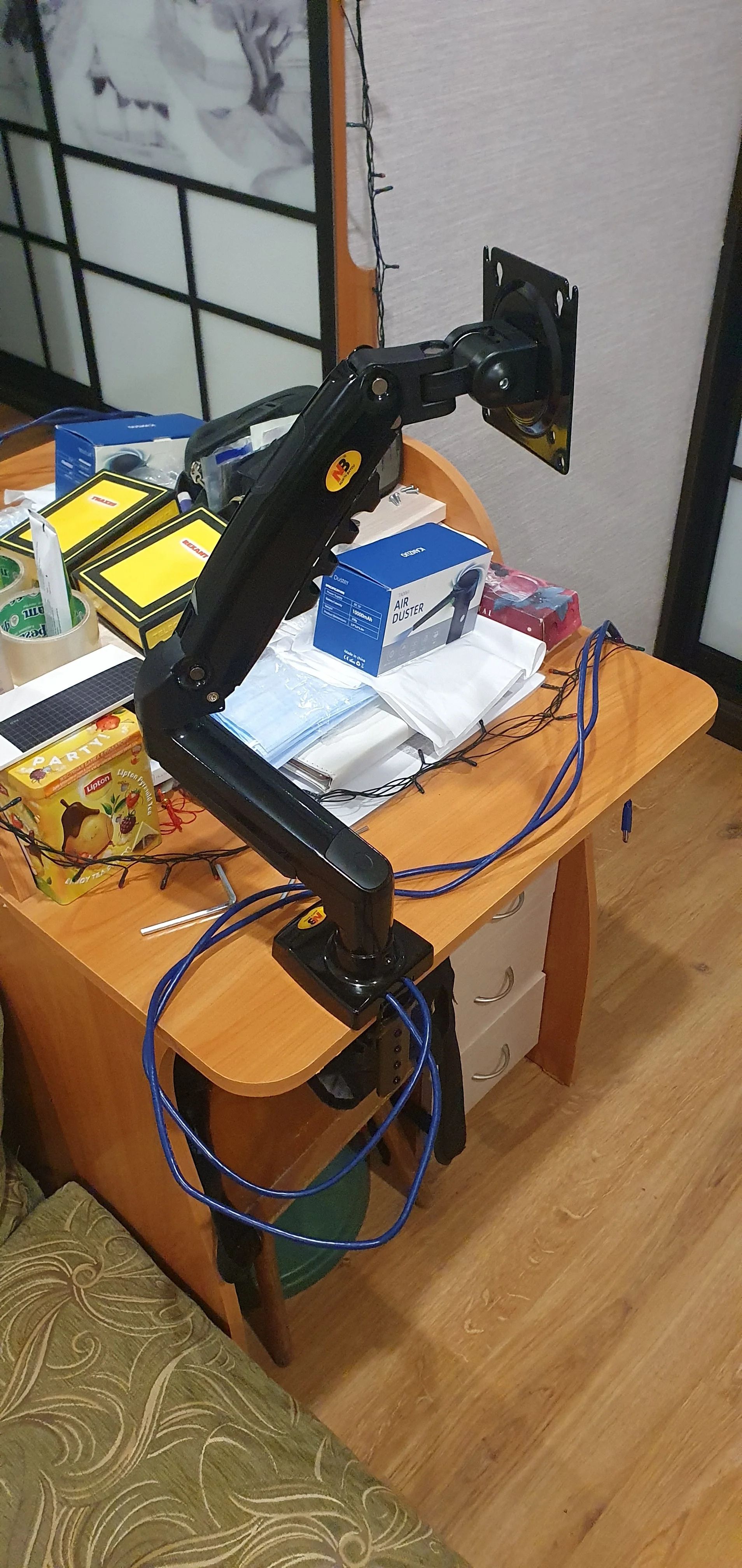 Хороший кронштейн, только немного повозился с его настройкой и кое как хватило по высоте до 2 Моника так все норм повесил 3 монитор зацепив за подоконник , так конечно написано не делать, но Моник весит ~2 кг так что все норм