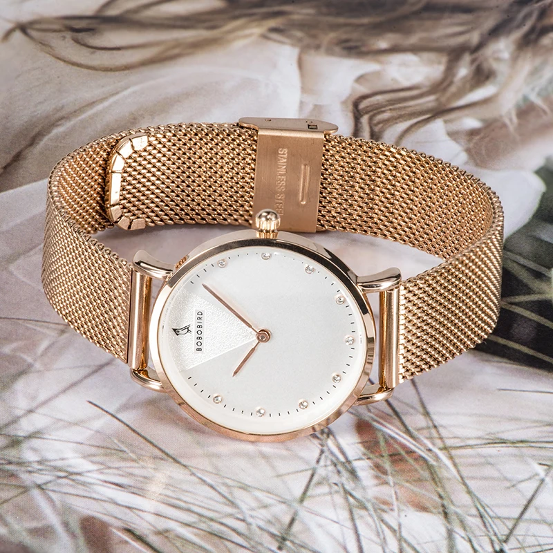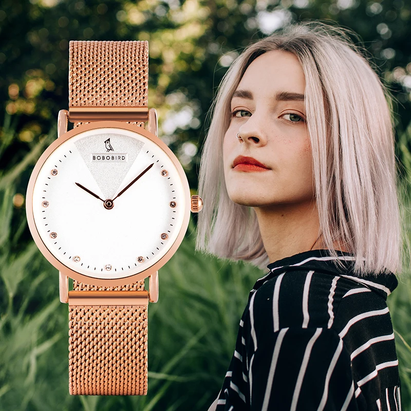 Часы BOBO BIRD женские кварцевые, Роскошные наручные часы из нержавеющей стали