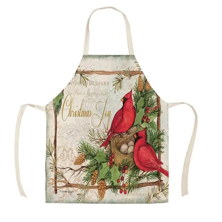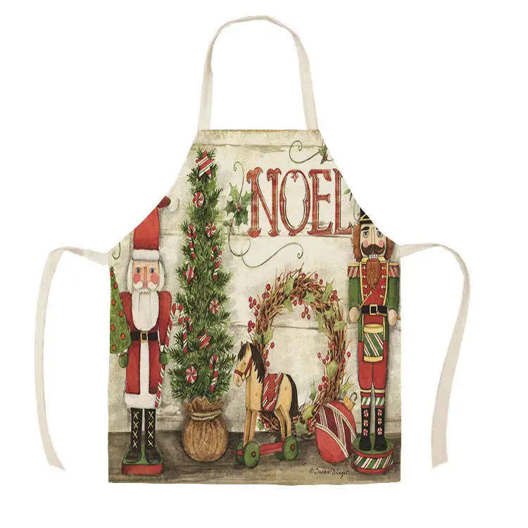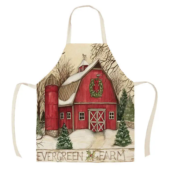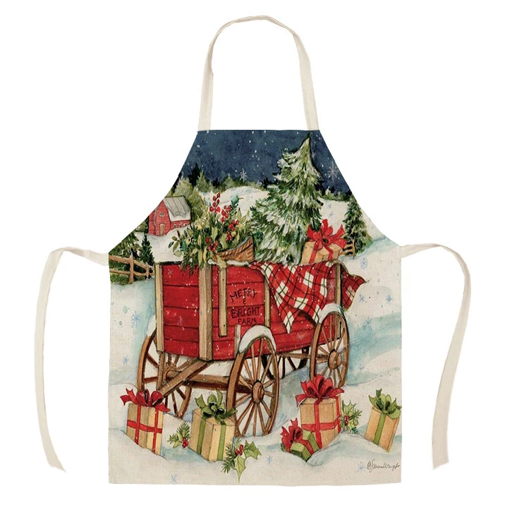 Фартук Кухонный из хлопка и льна, без рукавов, с принтом "Рождественская елка", 55 х68 см, 1 шт.