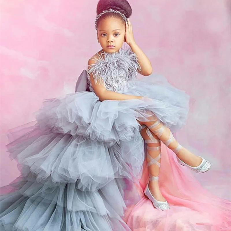 Модные платья для девочек с цветочным рисунком, фатиновое платье для девочек на день рождения с высокой и низкой талией, Пышное Платье с цветочной аппликацией для свадьбы, выпускного вечера, Причастия