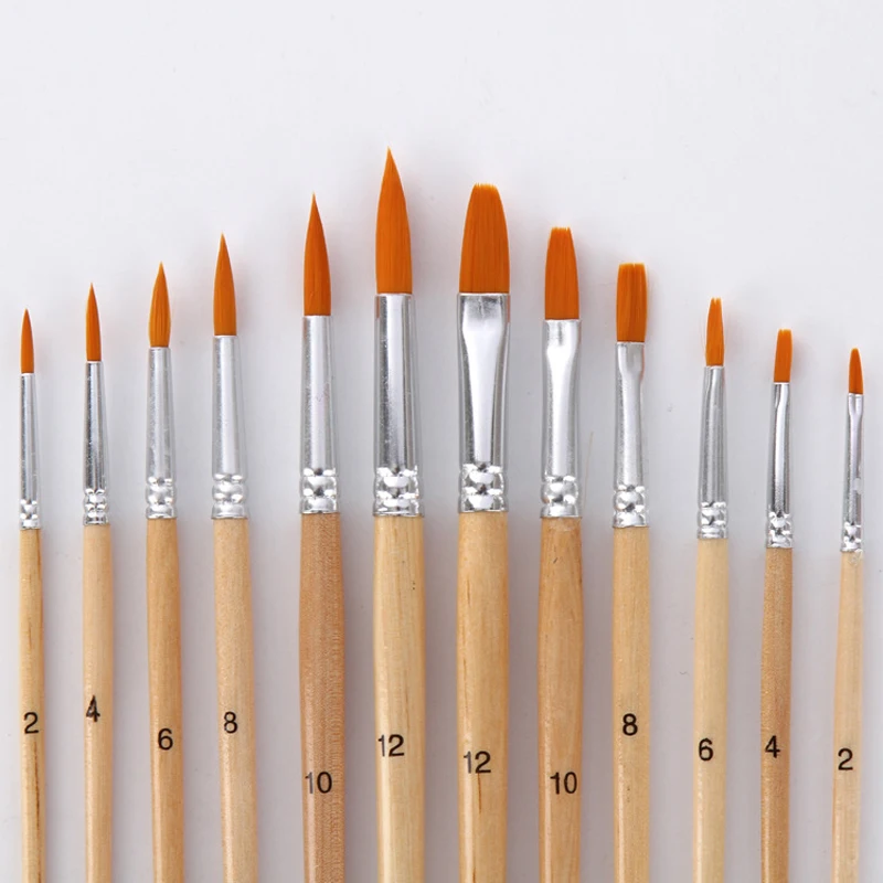 Кисти для рисования различных размеров, 12 шт.компл., цветные нейлоновые кисти для живописи маслом, кисти для рисования акварелью и акрилом, товары для рукоделия