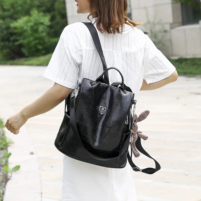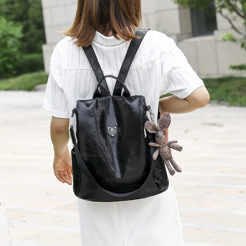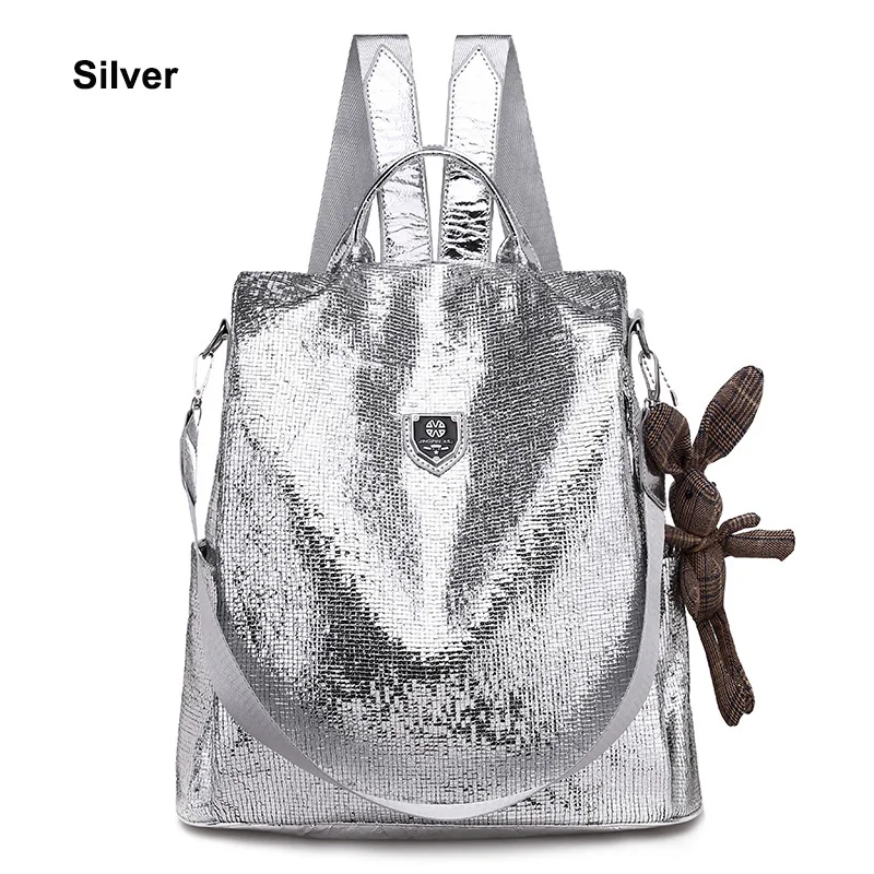 Рюкзак женский Toposhine, из искусственной кожи, с защитой от кражи, черныйсеребристый, 2021