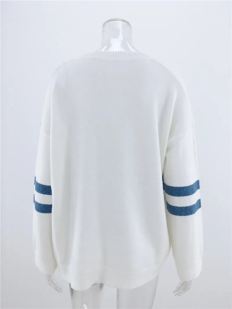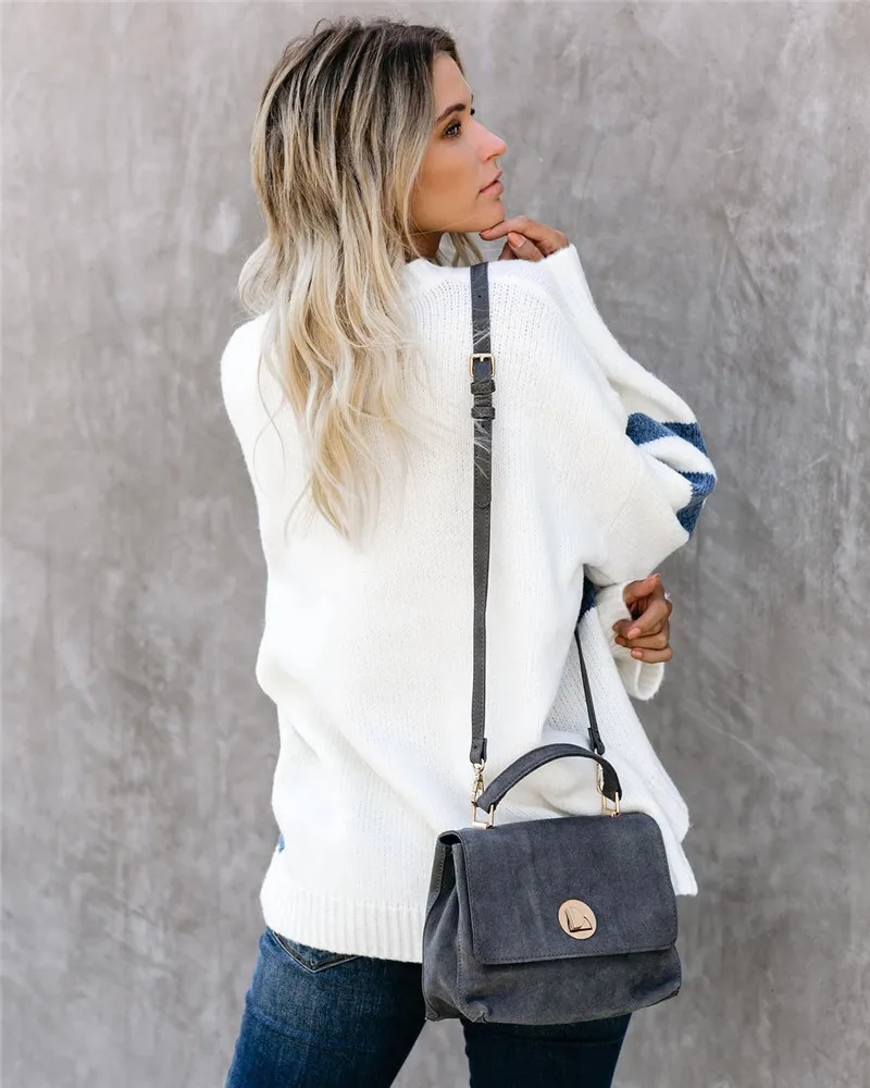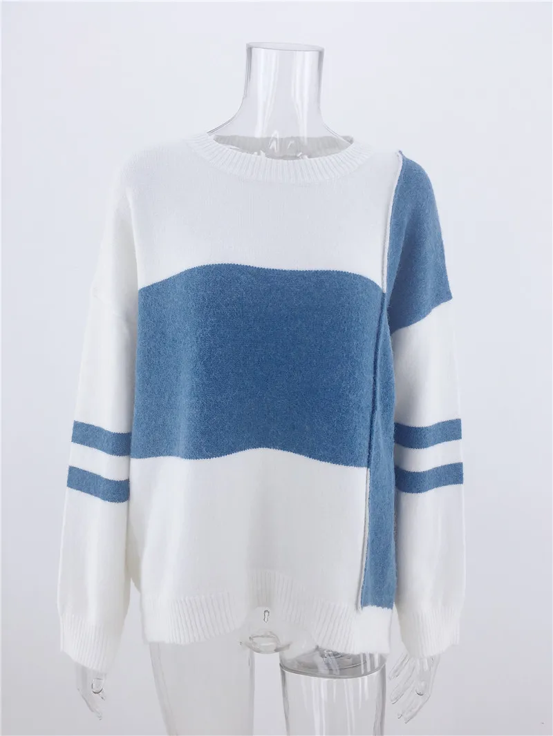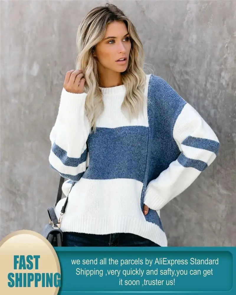 Цвет блока синий свитер женские свитера 2022 джемперы с длинным рукавом в полоску оверсайз вязаный Пушистый свитер пуловер для женщин