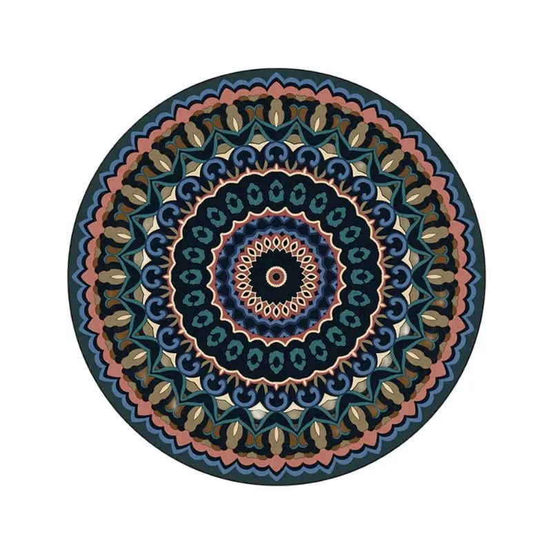 Модные коврики и ковровые покрытия для дома, гостиной, винтажный круглый ковер с узором из синих цветов для спальни, ручная стирка, 100% полиэстер