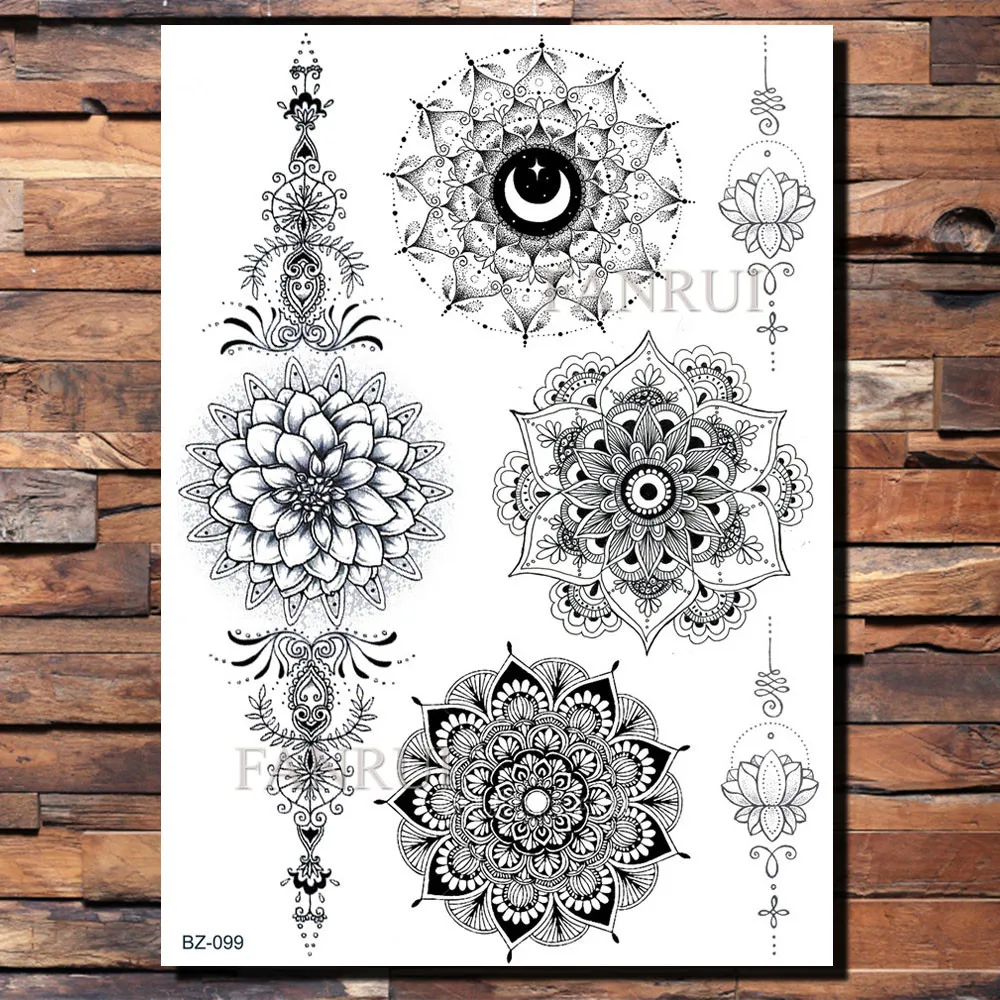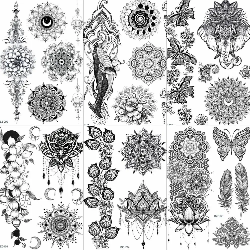 FANRUI черная хна КИТ слон Ганеш временная татуировка наклейка Mehndi ротанг маленькие кружева поддельные тату боди-арт рука татуировки DIY