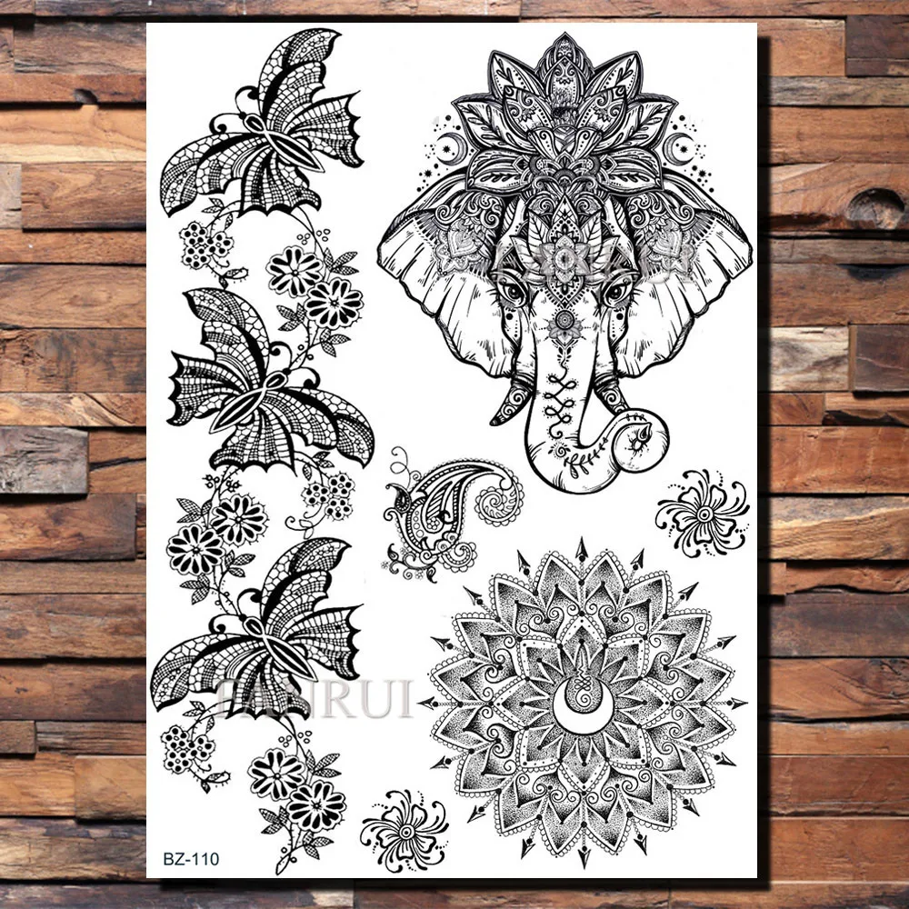 FANRUI черная хна КИТ слон Ганеш временная татуировка наклейка Менди из ротанга Маленькая кружевная поддельная тату боди-арт на заказ тату