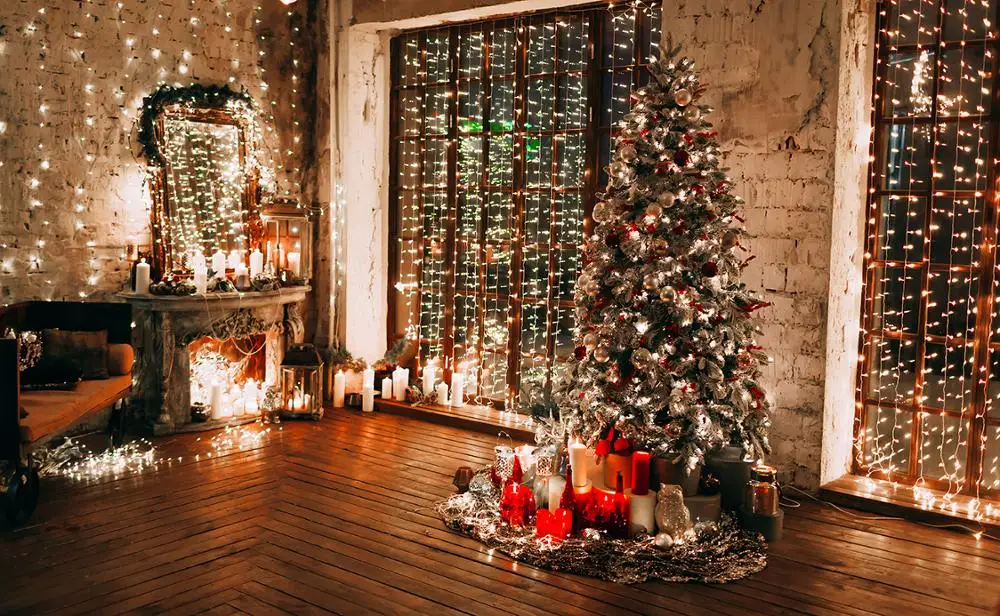 Capisco Рождественская елка интерьер камин фотография фоны новогодсветильник Роскошный декор фотографический фон для фотостудии