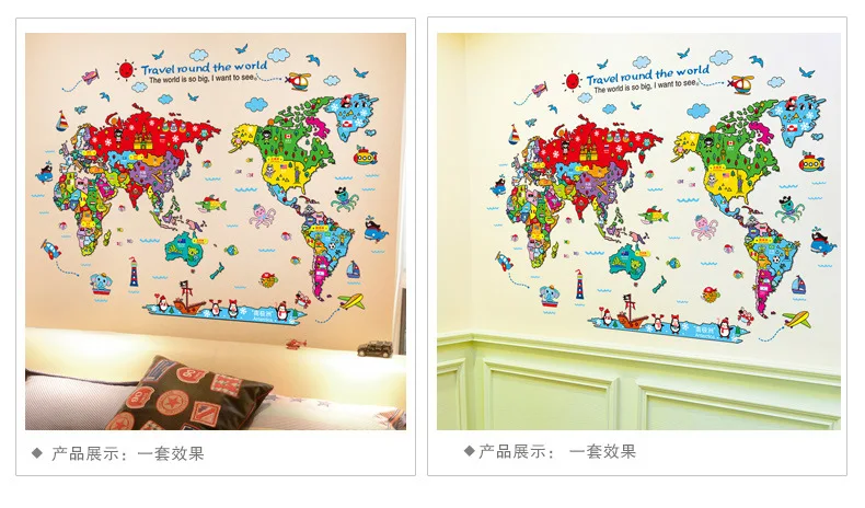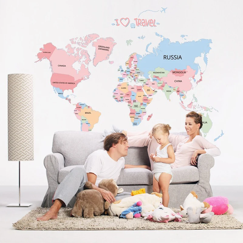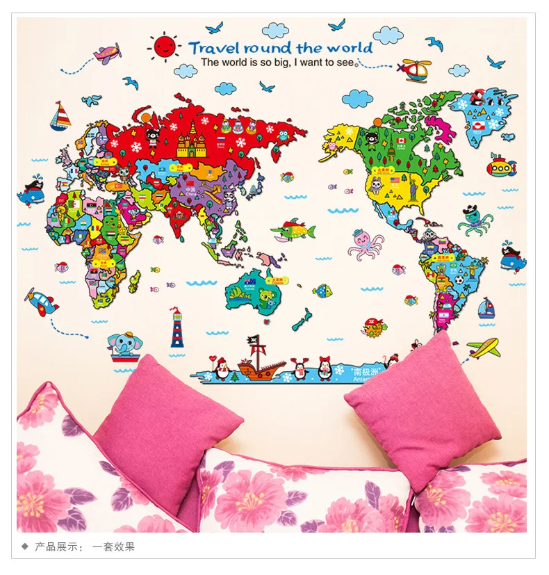 Карта мира на стену наклейки на стену для детской комнаты домашний ...