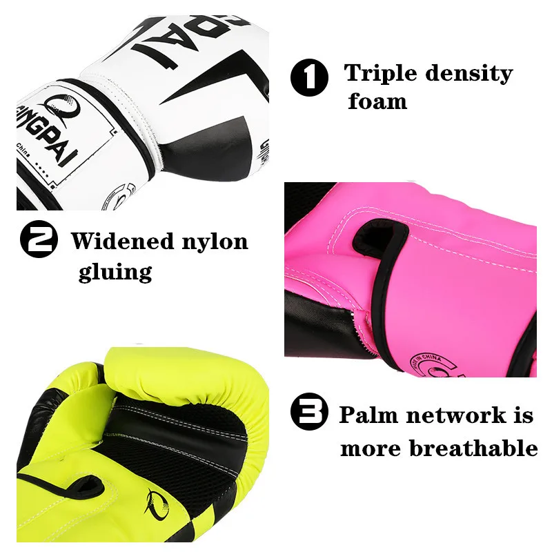 Красочные боксерские перчатки 6, 8, 10, 12 унций, взрослые полиурет...