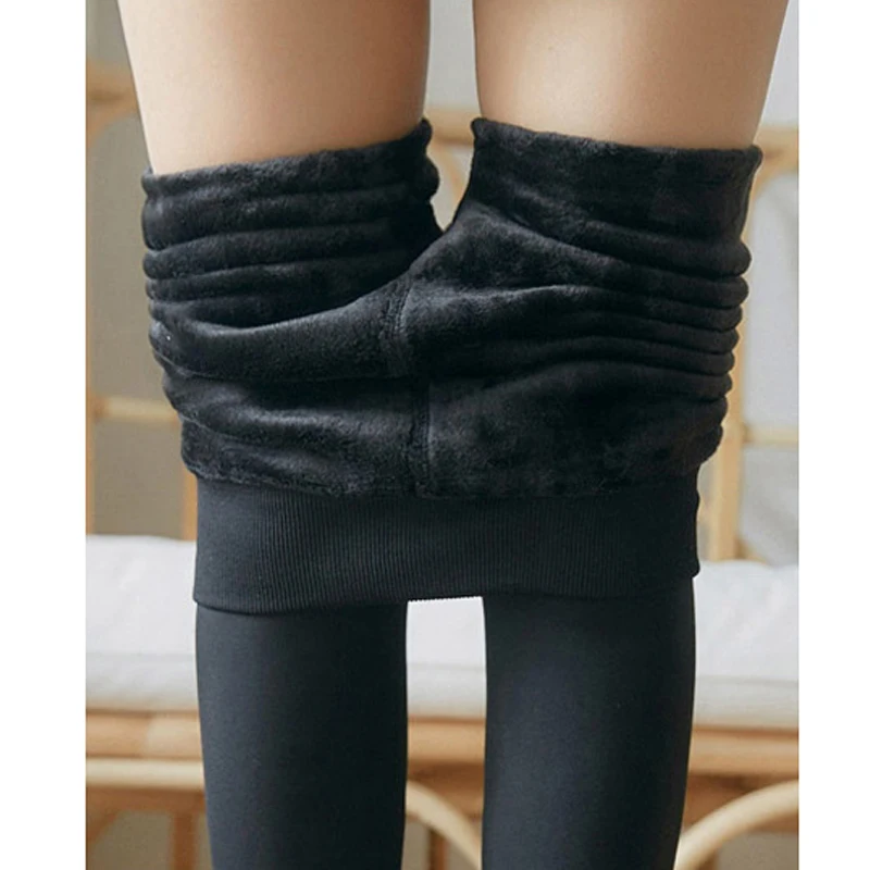 Женские колготки, модные однотонные теплые толстые колготки для девочек, черные эластичные колготки с имитацией кожи