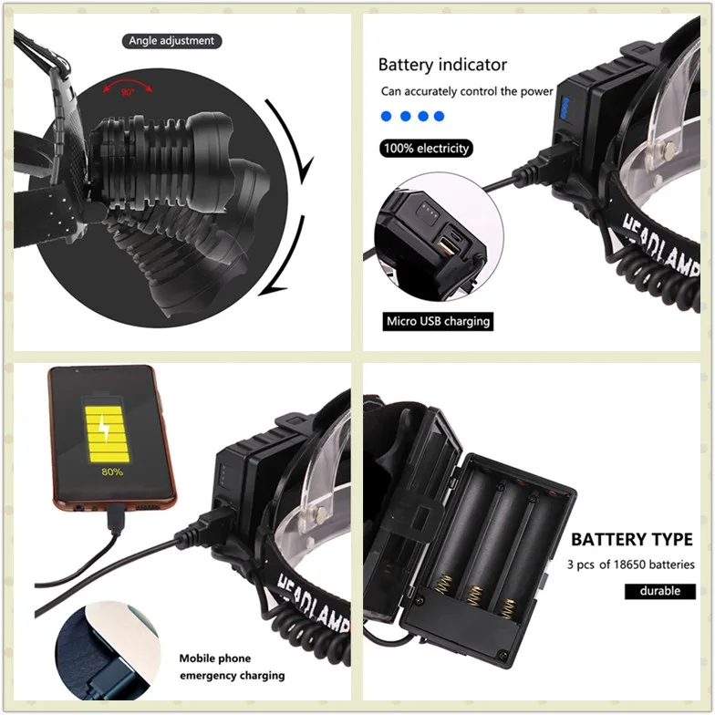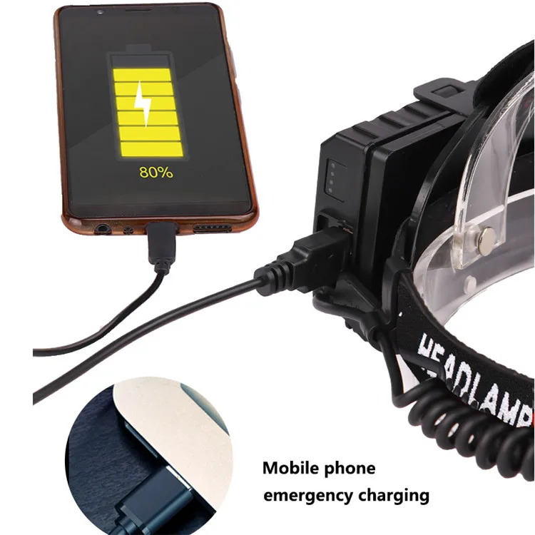 Светодиодный налобный фонарь Power ful XHP90.2, 8000 лм, USB, перезаряжаемый, водонепроницаемый, с масштабируемым внешним аккумулятором, для рыбалки, с использованием батареи 18650