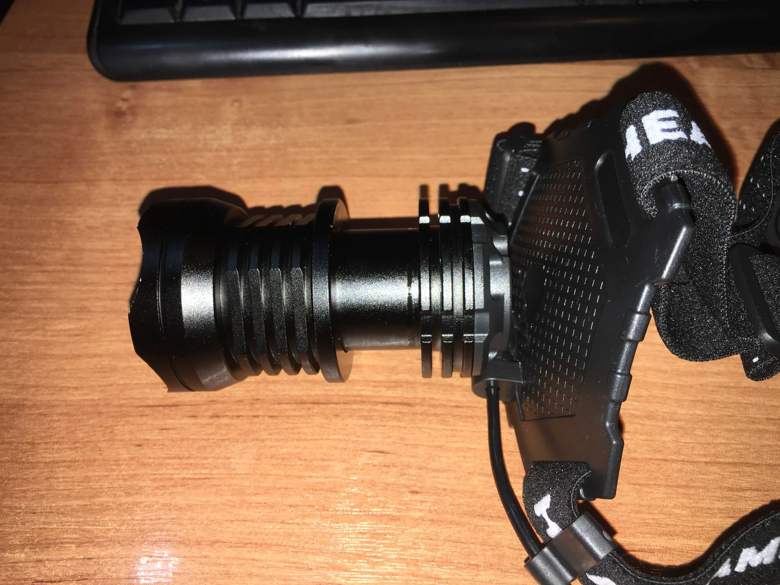 очень хороший фонарик, доставка в Брянск меньше недели, комплектность полная, батарейки полностью заряженные, коробка хлипкая но функции свои выполняет в нее всё без проблем помещается в т. ч. вынутые батарейки, на голове сидит отлично, светит ярко, сам светодиод внутри с линзой в виде какого-то закруглённого штырька тут фото такого нет! салазки зума смазаны чем-то, прет от него конечно ппц (пластиком)