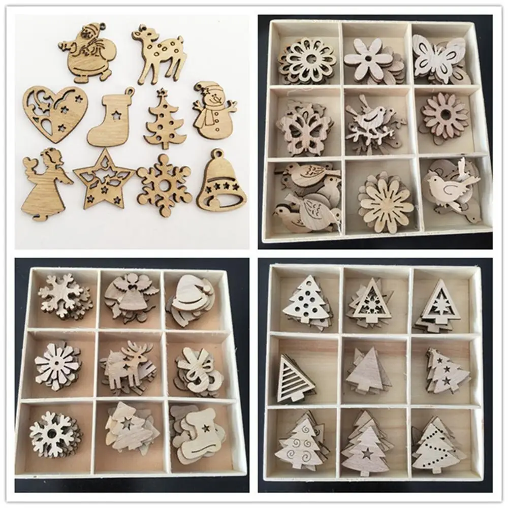 50 шт.лот 3 мм деревянный смешанный узор Творческий мультфильм натуральный ретро цвет Рождественские украшения подарок аксессуары