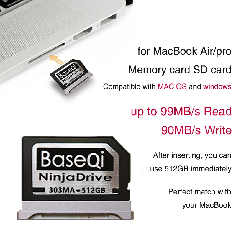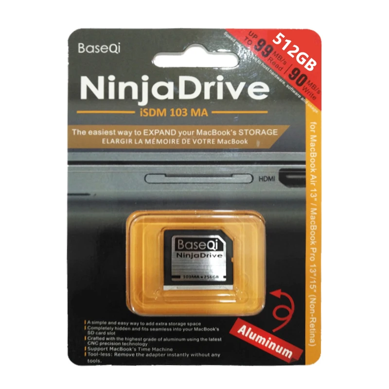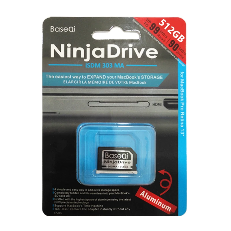 Алюминиевая карта памяти BaseQi NinjaDrive на 512 ГБ, SD-карта для MacBook Air 13 дюймов и MacBook Pro Retina 1315 дюймов