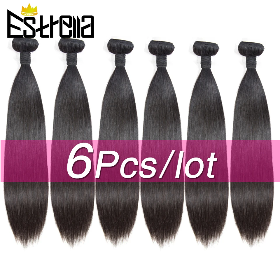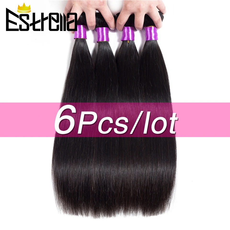 Прямые бразильские 100% человеческие волосы, пучки 6 шт.лот, волосы Remy, плетеные пучки, не спутываются, не выпадают, 8-26 дюймов, естественный цвет