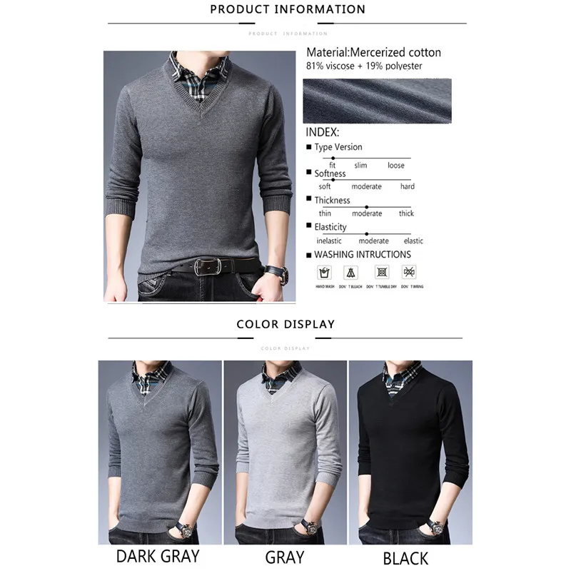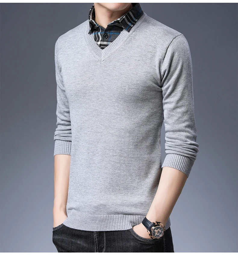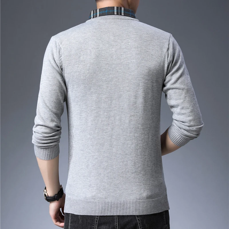 Тонкий свитер TFETTERS, Мужская трикотажная одежда, осенняя одежда, модный свитер, Мужская имитация двух частей, водолазка, воротник, одежда для мужчин