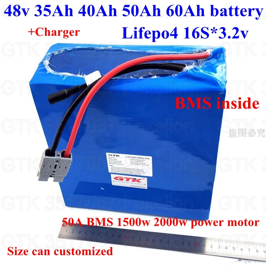 48v 35Ah 40Ah 50Ah Lifepo4 батарея 60Ah литиевый Электрический велосипед Скутер 50A BMS 2400w 2000w мощность двигателя