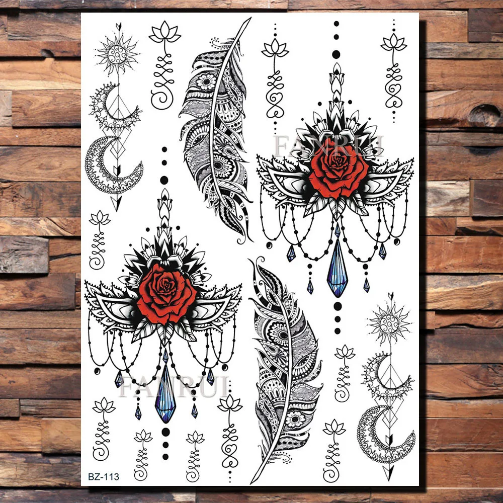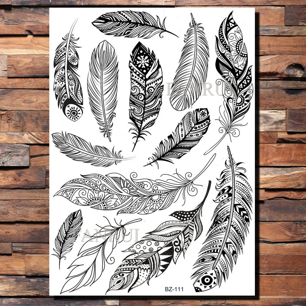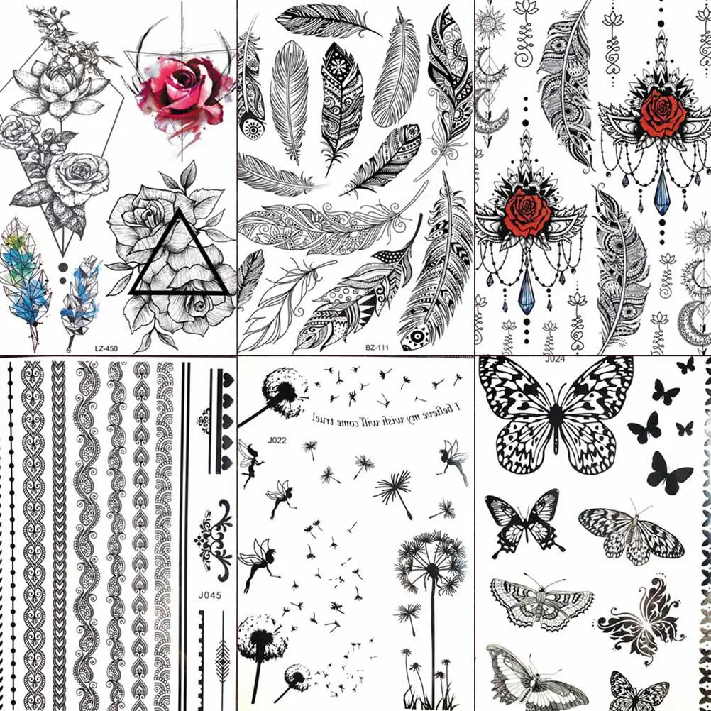 FANRUI перо Одуванчик бабочка черная хна временная татуировка наклейка мехенди для женщин руку поддельные тату боди-арт на руку Татуировка наклейка