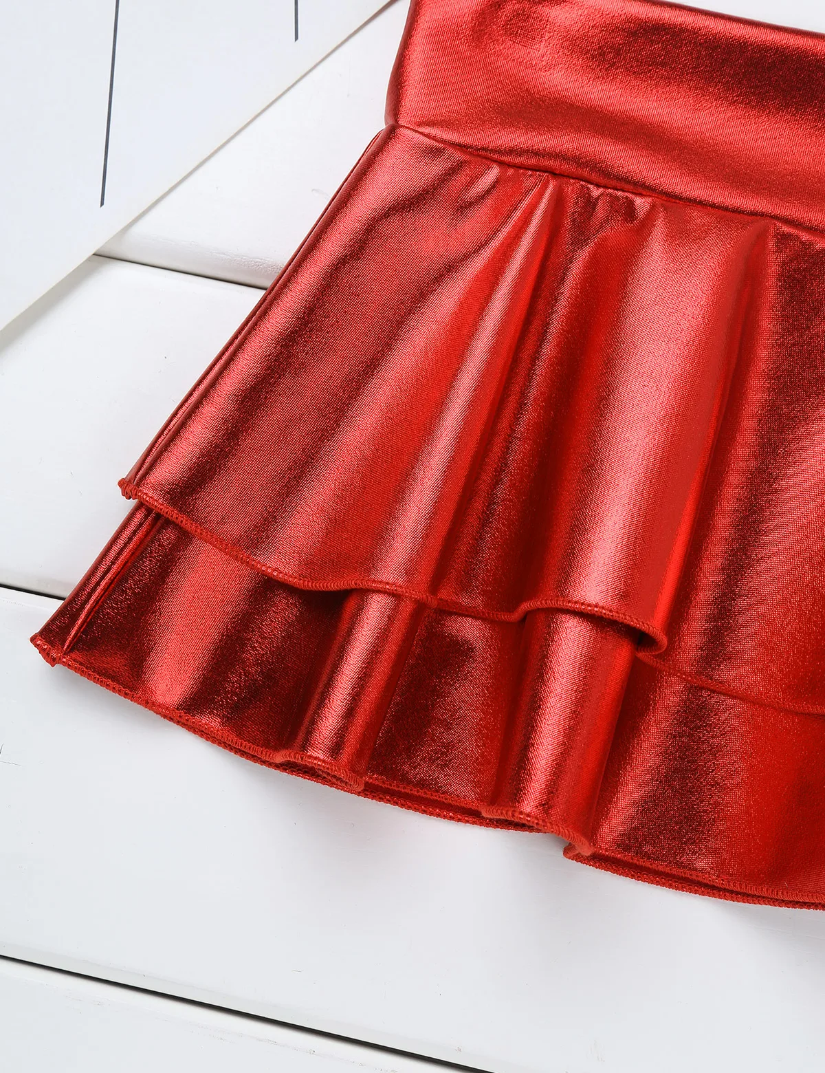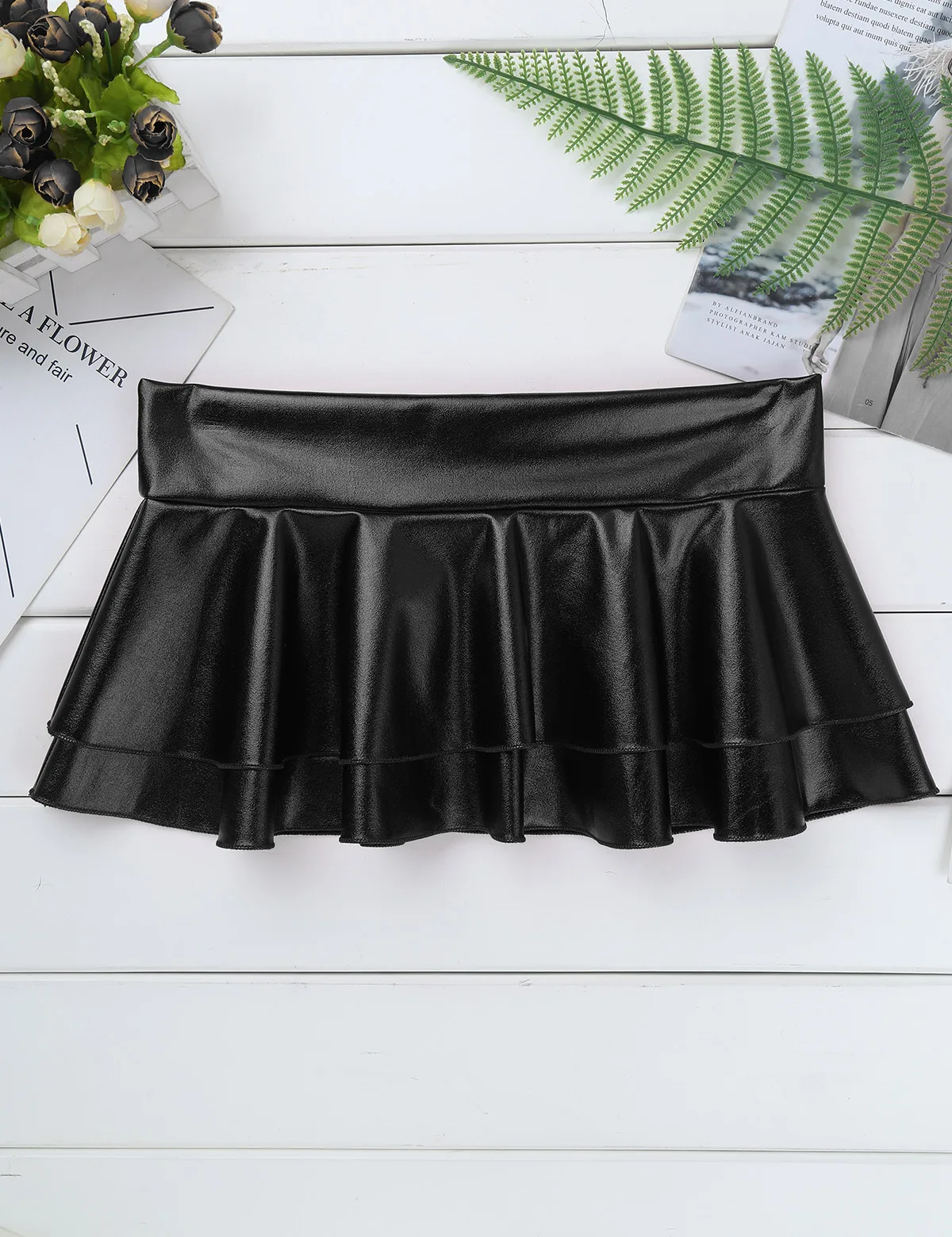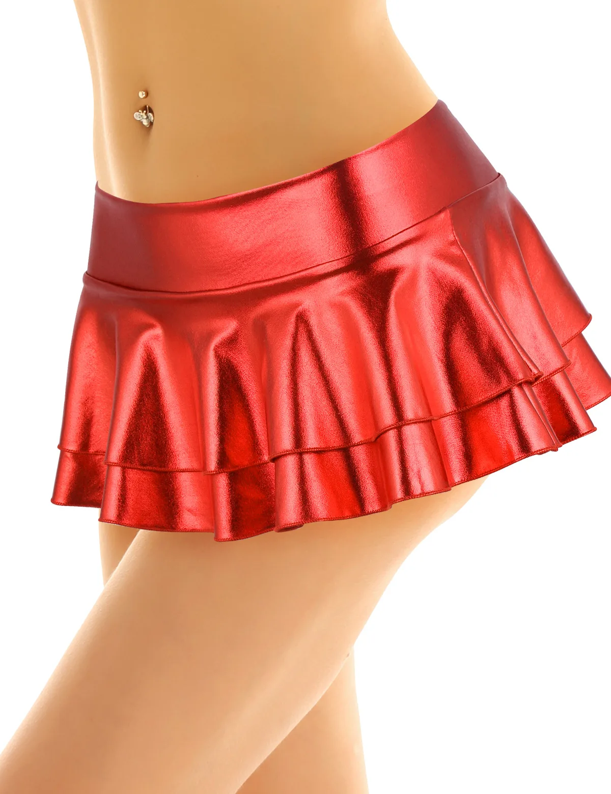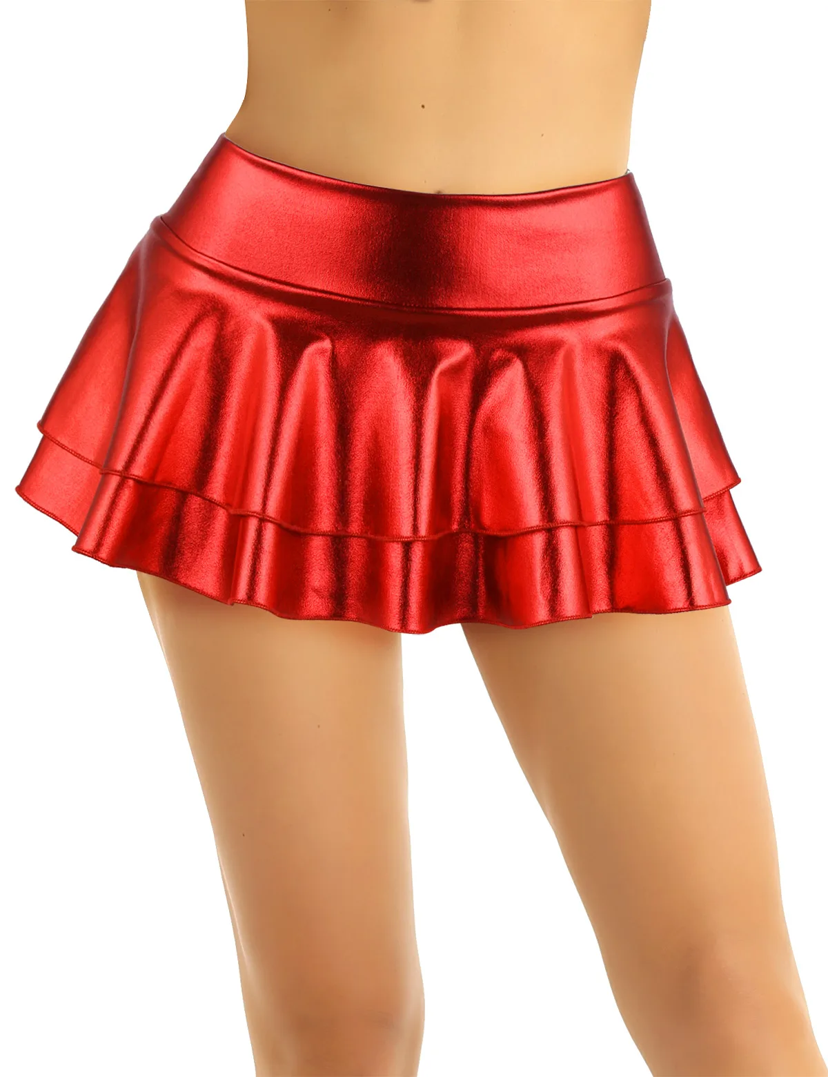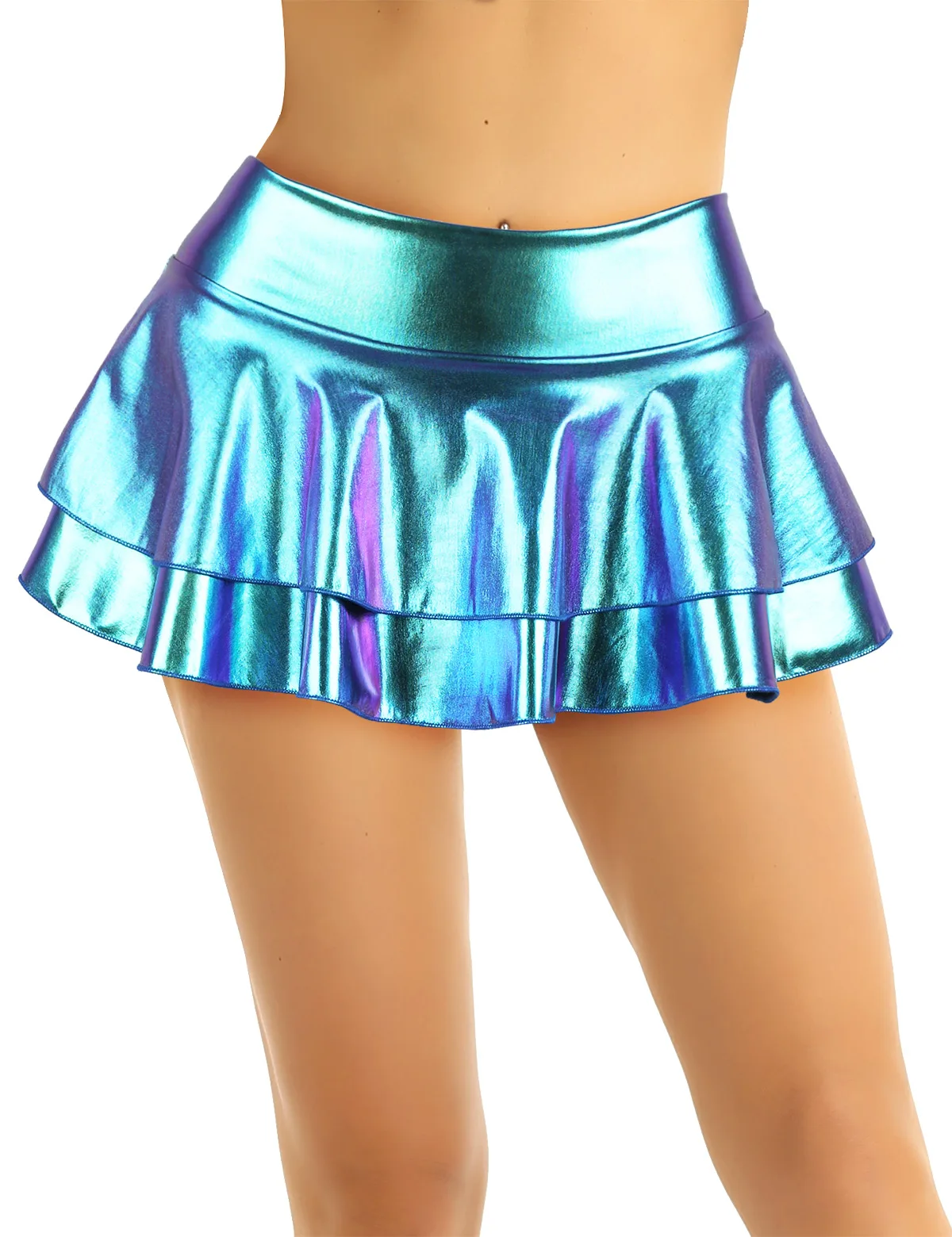 Женская Блестящая металлическая юбка с низкой посадкой, гофрированные шорты для танцев на шесте, трико, Клубные, вечерние, сексуальные мини юбки, танцевальный фестивальный Рейв, костюм