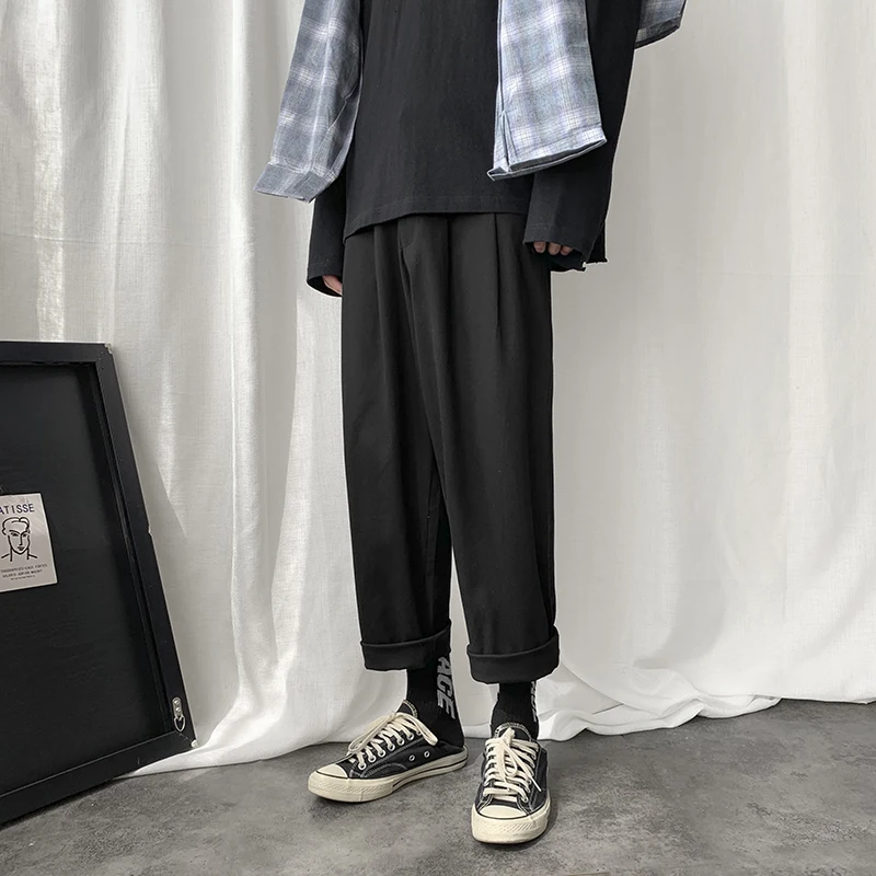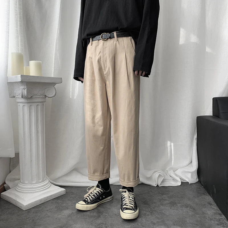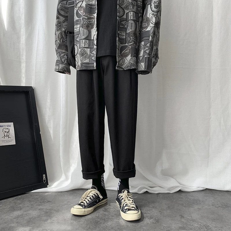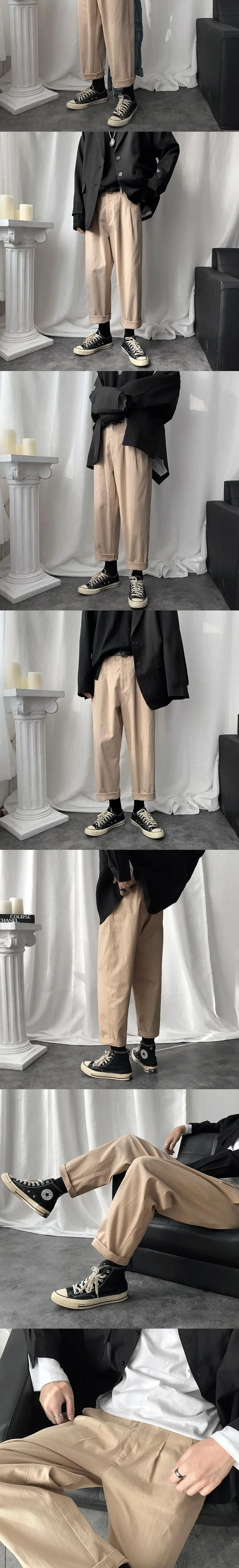 2019 осень и зима новые молодежные Популярные студенческие прямые брюки одноцветные модные повседневные свободные маленькие брюки черныйхаки