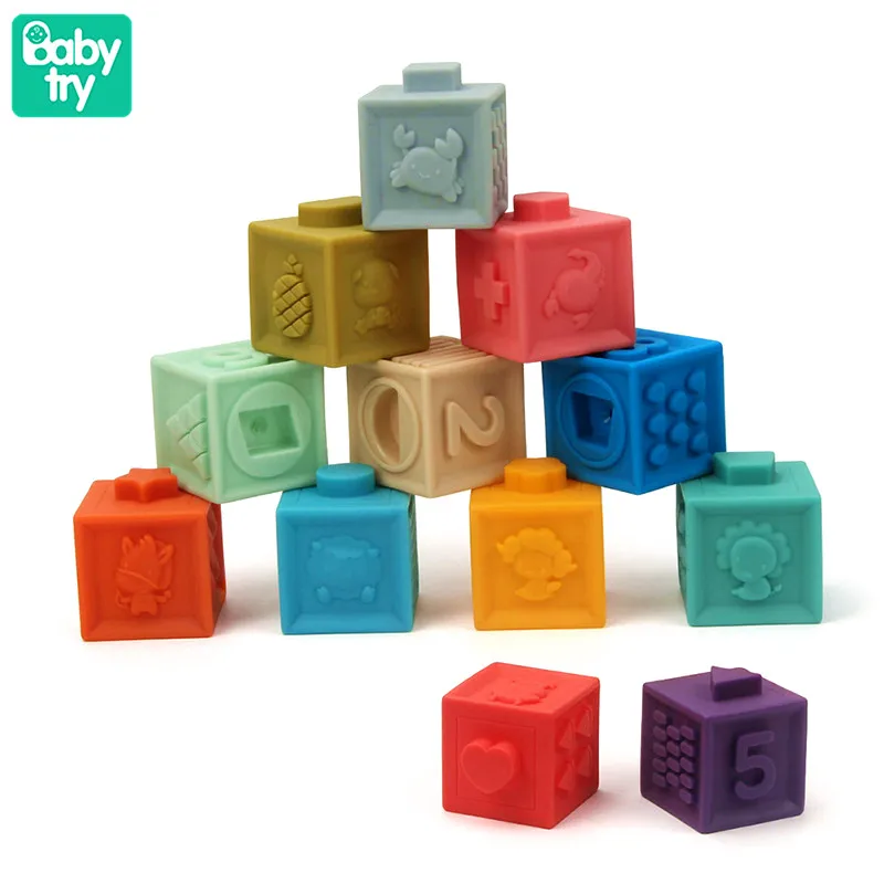Большой мягкий пластиковый силиконовый прорезыватель, строительные блоки для младенцев, 3D сенсорный кубический шар, Детские кирпичи, игрушки Монтессори для ванной 0-12 месяцев
