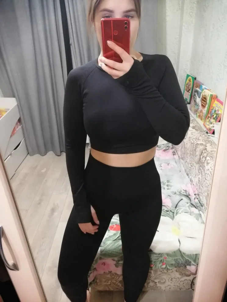 Очень довольная костюмом! Посылка шла 14 дней. Размер s подошёл как влитой. Мой рост 171 вес 52 кг обьем груди 85 бедра 90. Лосины не просвечивают, приятный материал, и очень красивый цвет. буду ещё заказывать данные костюмчики.!) советую!)