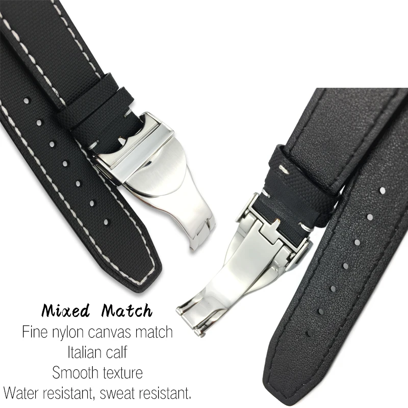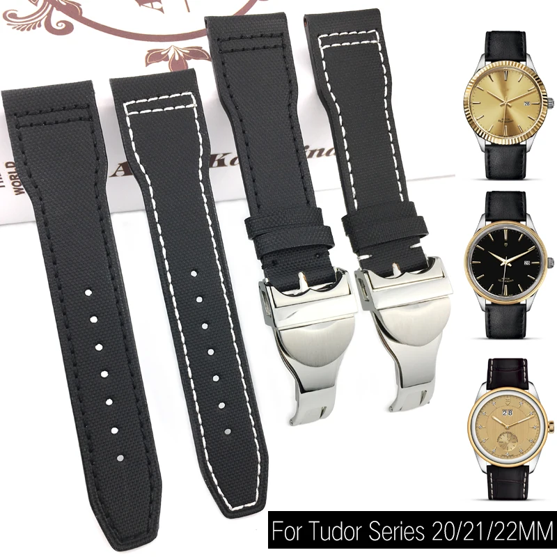 Ремешок из воловьей кожи для наручных часов, складной браслет с нейлоновой нижней частью для часов Tudor серии Black Bay, 19 мм 20 мм 21 мм 22 мм