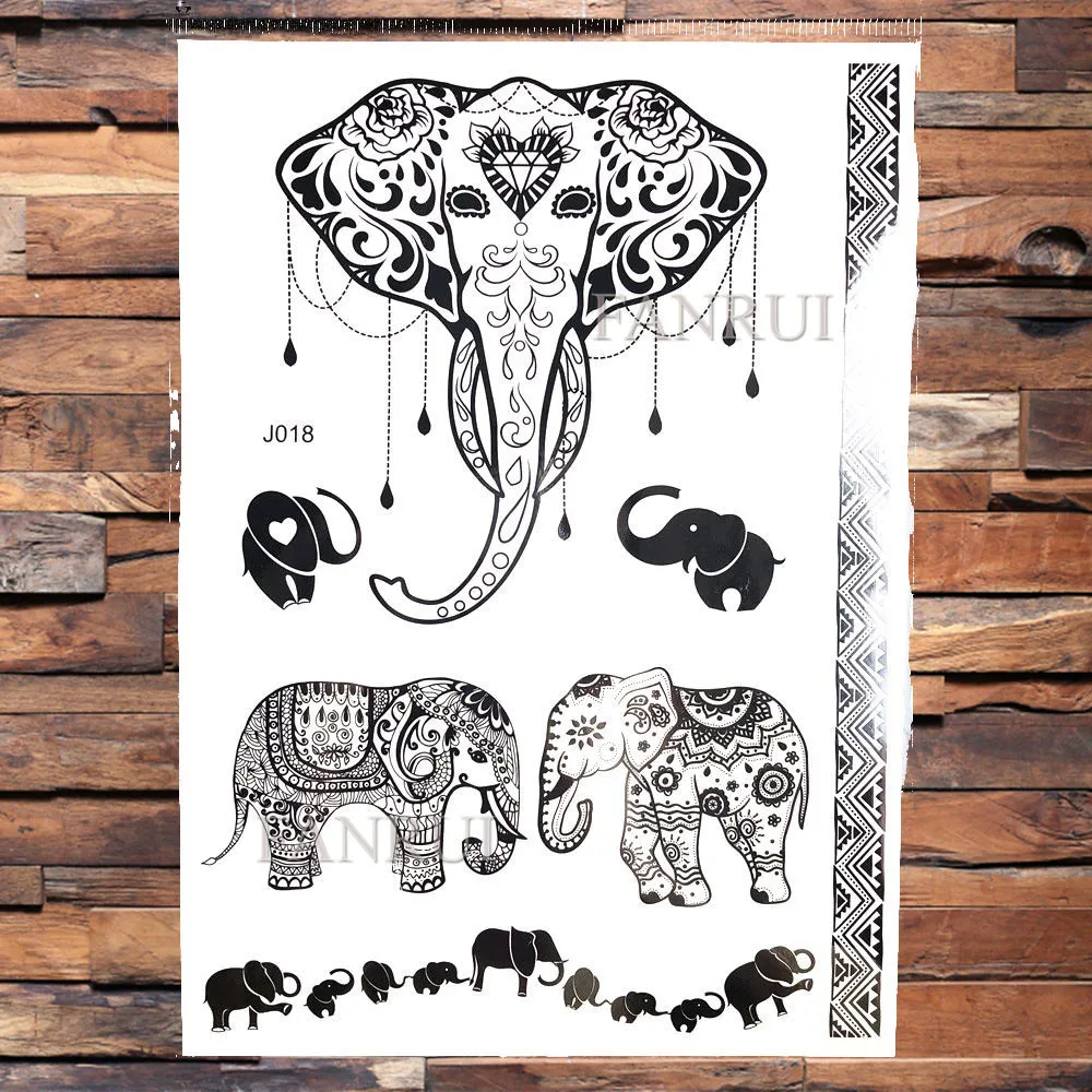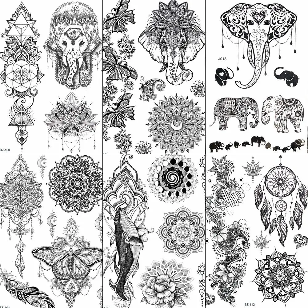 FANRUI слон Ганеш черная хна временная татуировка наклейка Mehndi Хамса рука поддельные татуировки водостойкие боди-арт рука Татуировка DIY