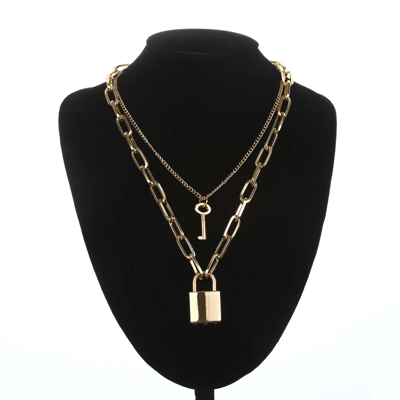 Ожерелье с подвеской в виде золотого металлического замка для женщин, модное ожерелье с подвеской, эффектные модные ювелирные украшения 2019