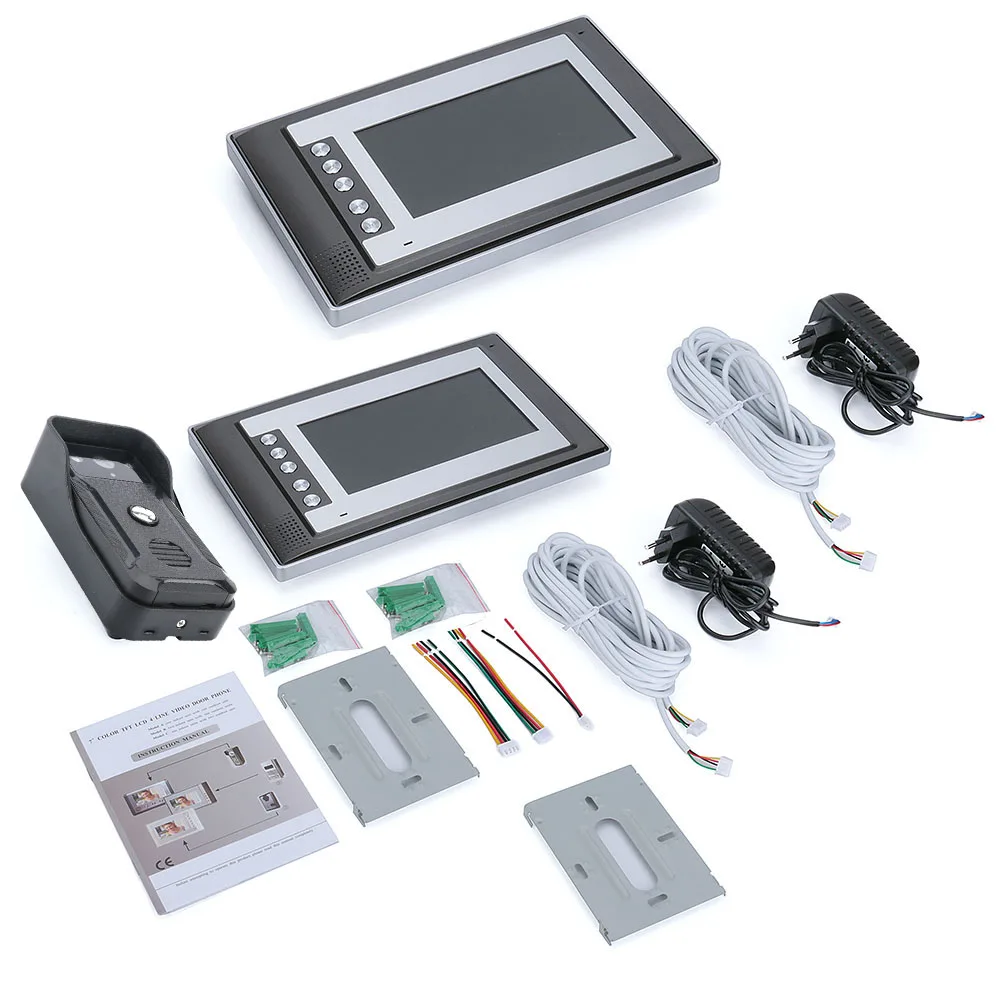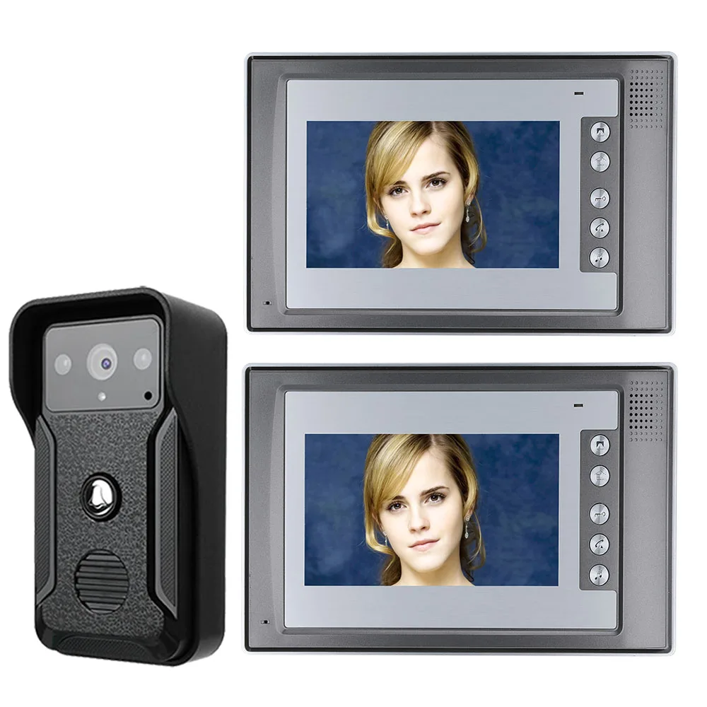 7-дюймовый TFT видеодомофон с 2 мониторами, дверной звонок, домофон с 1 камерой, 2-монитором, ночным видением, с камерой HD 700TVL и функцией ночного видения, с функцией ночного видения