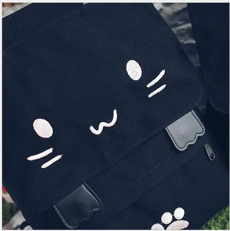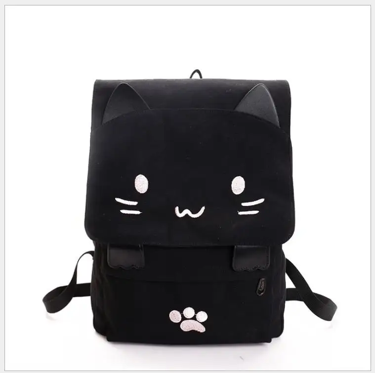 Милый холщовый рюкзак с рисунком кошки, рюкзаки с вышивкой для девочек-подростков, школьная сумка, модный черный рюкзак с принтом, рюкзаки