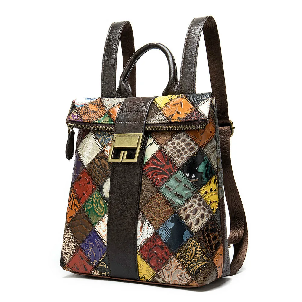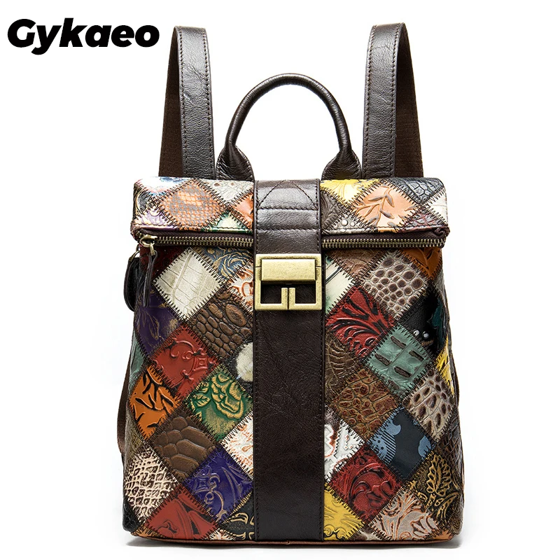 Рюкзак Gykaeo из натуральной кожи в стиле ретро для женщин, повседневные Лоскутные сумки в клетку для девушек, уличные сумки для покупок