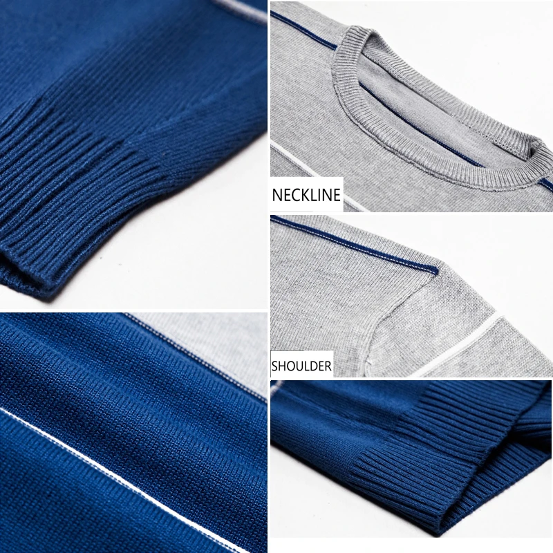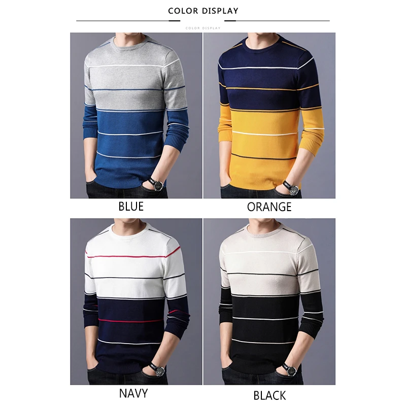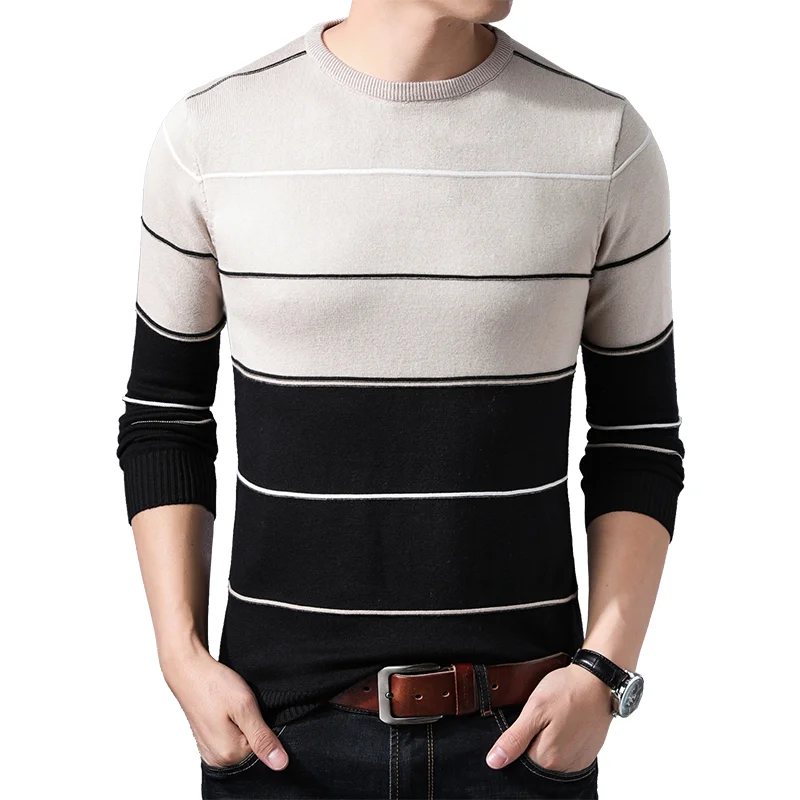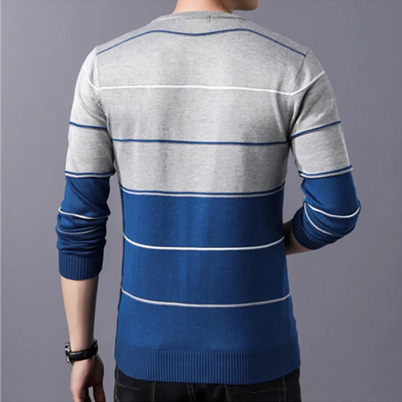 Мужской полосатый свитер TFETTERS, мужской облегающий свитер с круглым вырезом, Мужской трикотажный пуловер, модный свитер на весну и осень