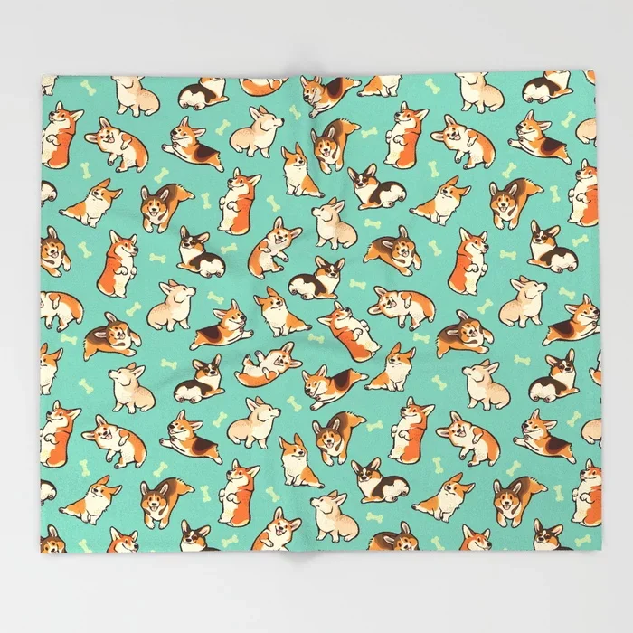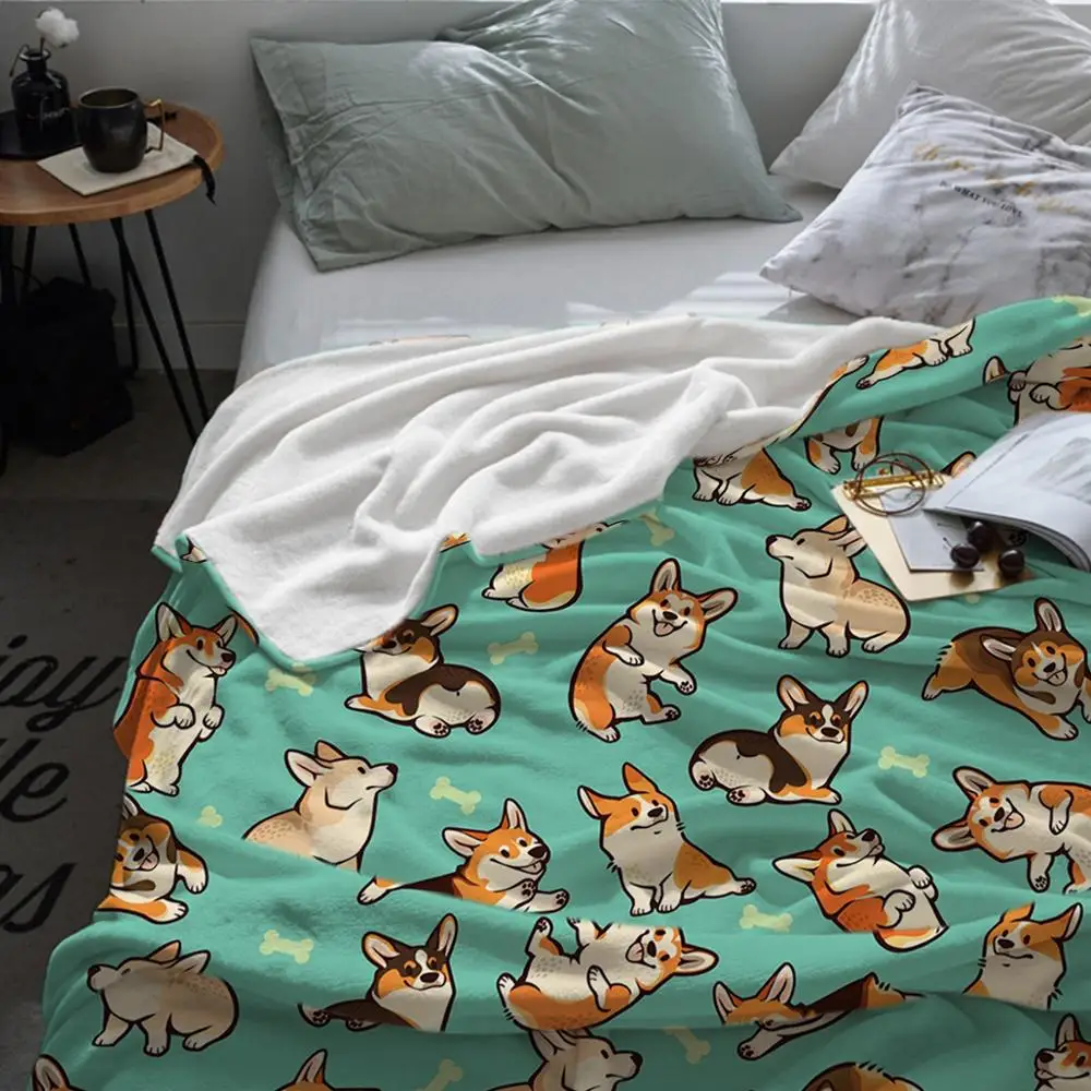 Одеяло с изображением собаки корги из мультфильма, милый детский дизайн, Зеленое одеяло с изображением корги для кровати, рождественские украшения для дома