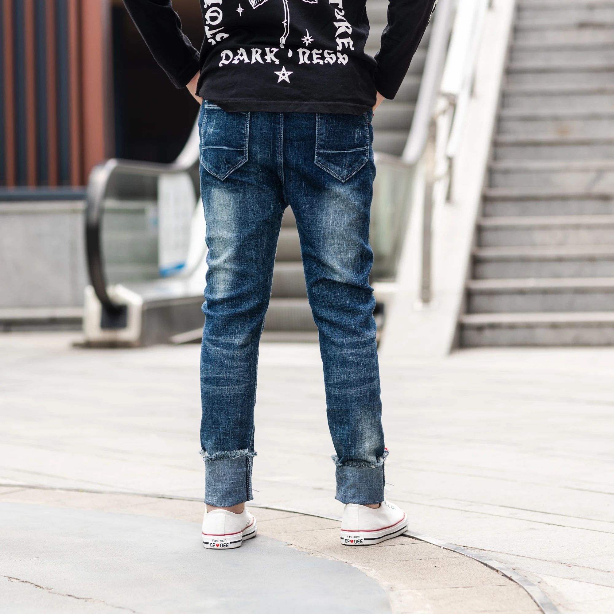 Ienens От 5 до 13 лет, одежда для мальчиков, тонкие прямые джинсы стрейтч классические брюки; Детская джинсовая одежда; Длинные штаны для маленьких мальчиков повседневные брюки для девочек
