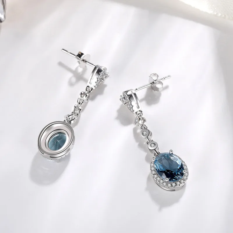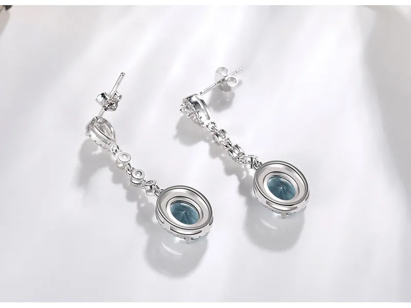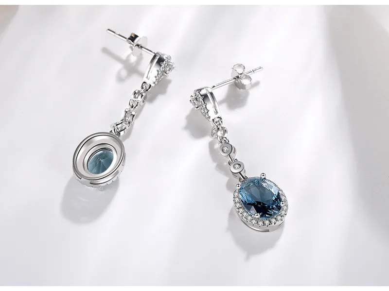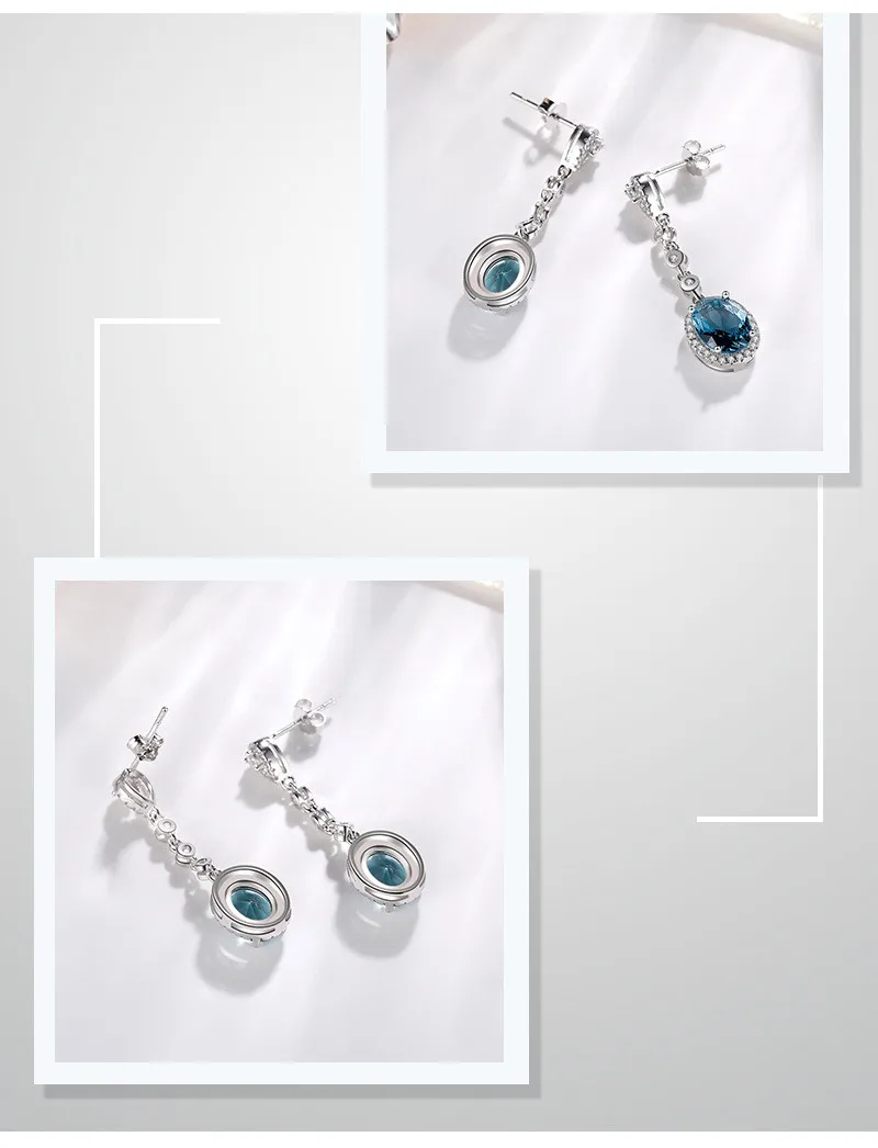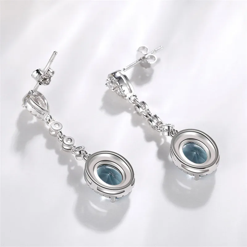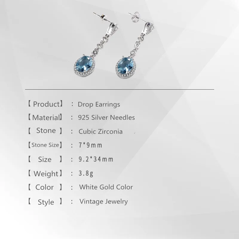 Женские серьги-подвески из серебра 925 пробы, Винтажные Ювелирные изделия с овальным синим кубическим цирконием, длинные серьги, темпераментные ювелирные изделия CCE648