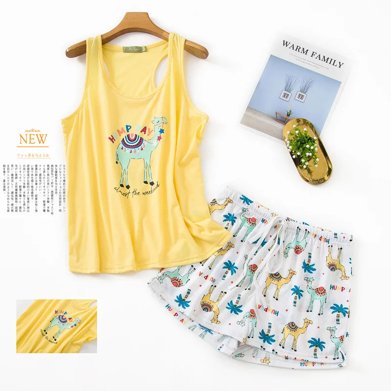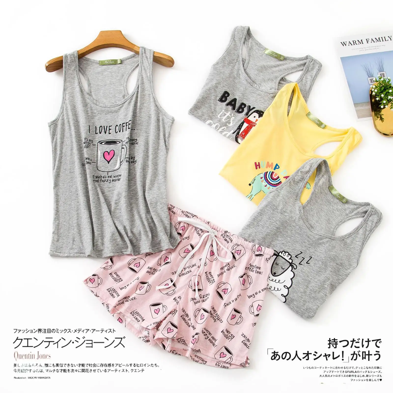 Пижамный комплект Женский хлопковый, пикантная Пижама без рукавов, с шортами и круглым вырезом, Уютная домашняя одежда, милая мультяшная Пижама, домашняя одежда, лето