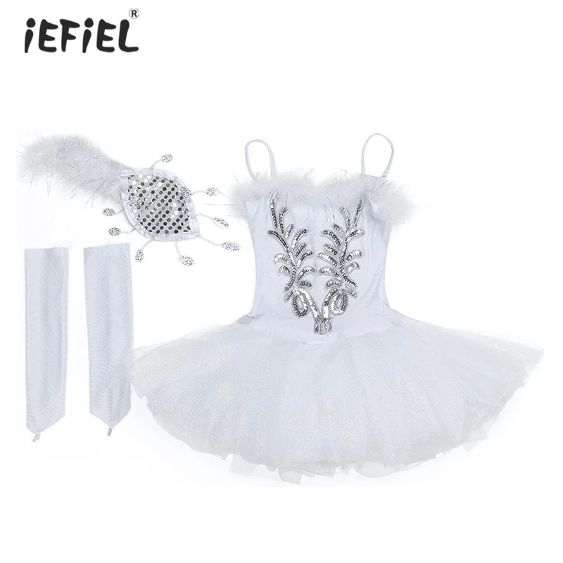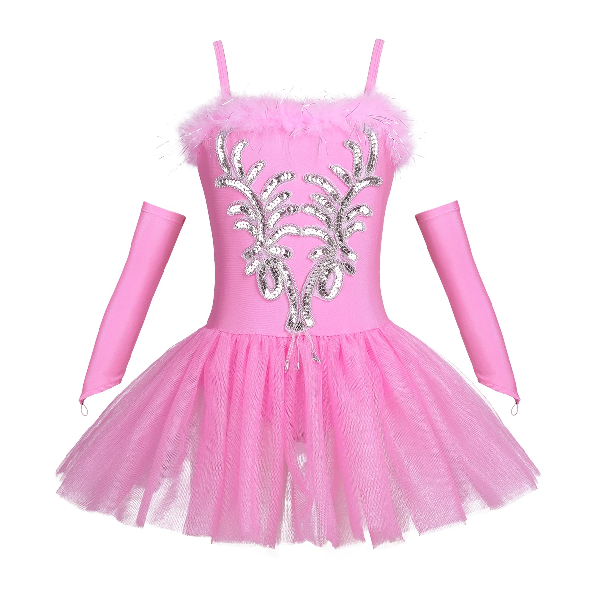 Балетное платье-пачка для девочек с блестками, на тонких бретельках, балетное платье с блестками, гимнастическое трико с перчатками и заколкой для волос