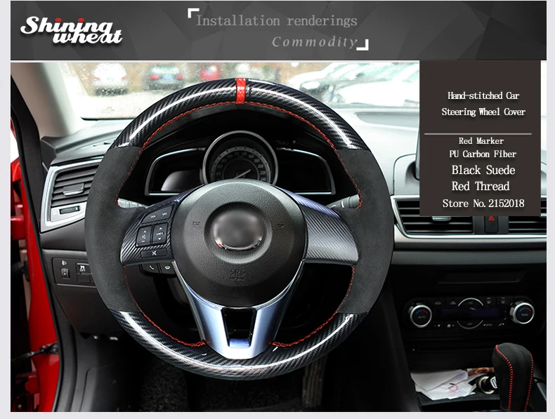 Чехол на руль из искусственной кожи и углеродного волокна, блестящий, для Mazda 3 Axela, Mazda 6, Atenza, Mazda 2 CX-3, CX-5, Scion iA 2016