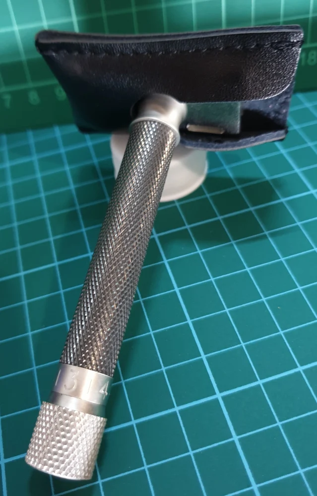 Внутренний корпус-мягкая кожа, поэтому я немного боюсь, что рукав царапает поверхность головки бритвы. Вставка бритвы была достаточно сжатой. Я надеюсь, что кожа немного растягивается после дальнейшего использования, как натуральная кожа. Испытательная бритва: вариант Parker