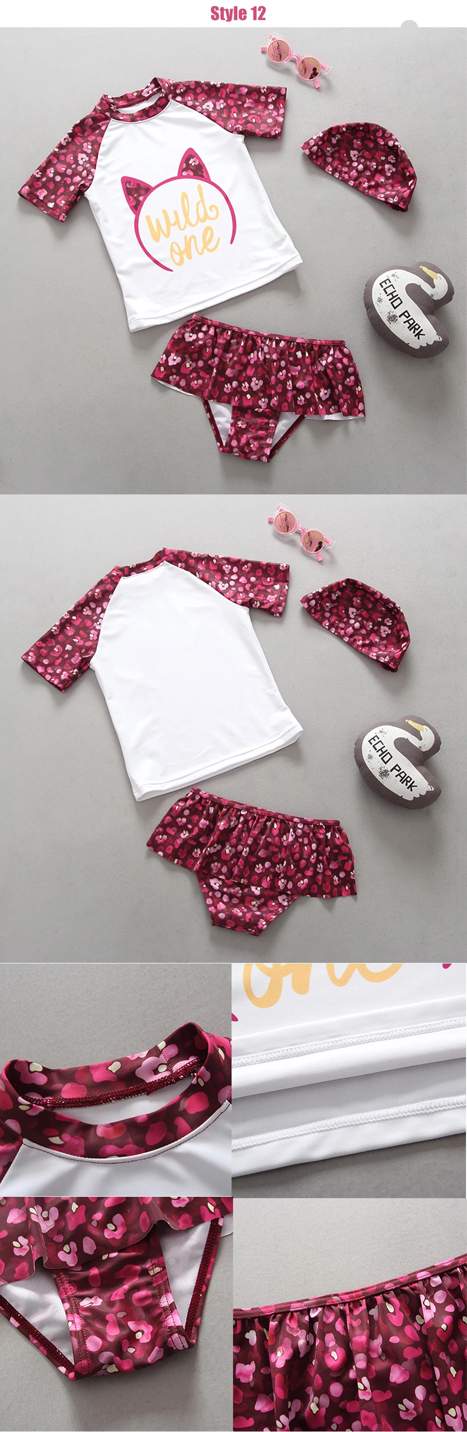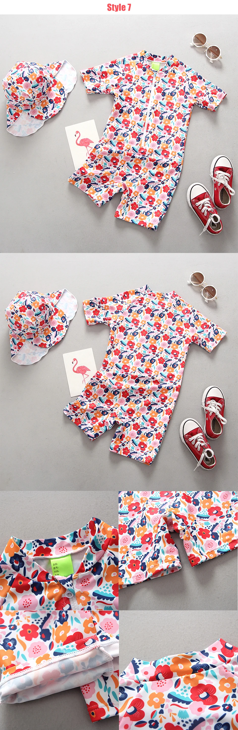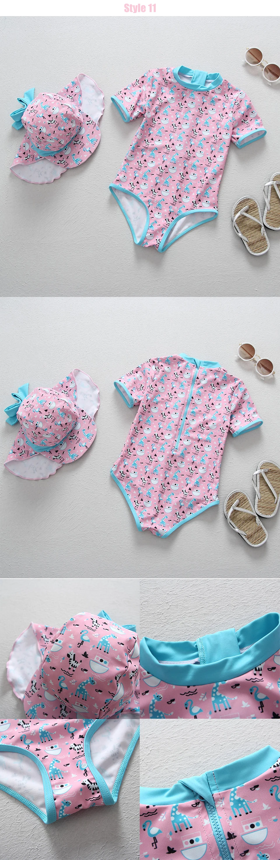 Swimsuit for girlsrabbit, flamingo, cat, floral, stars,crab, stripes, whale, shark, pony