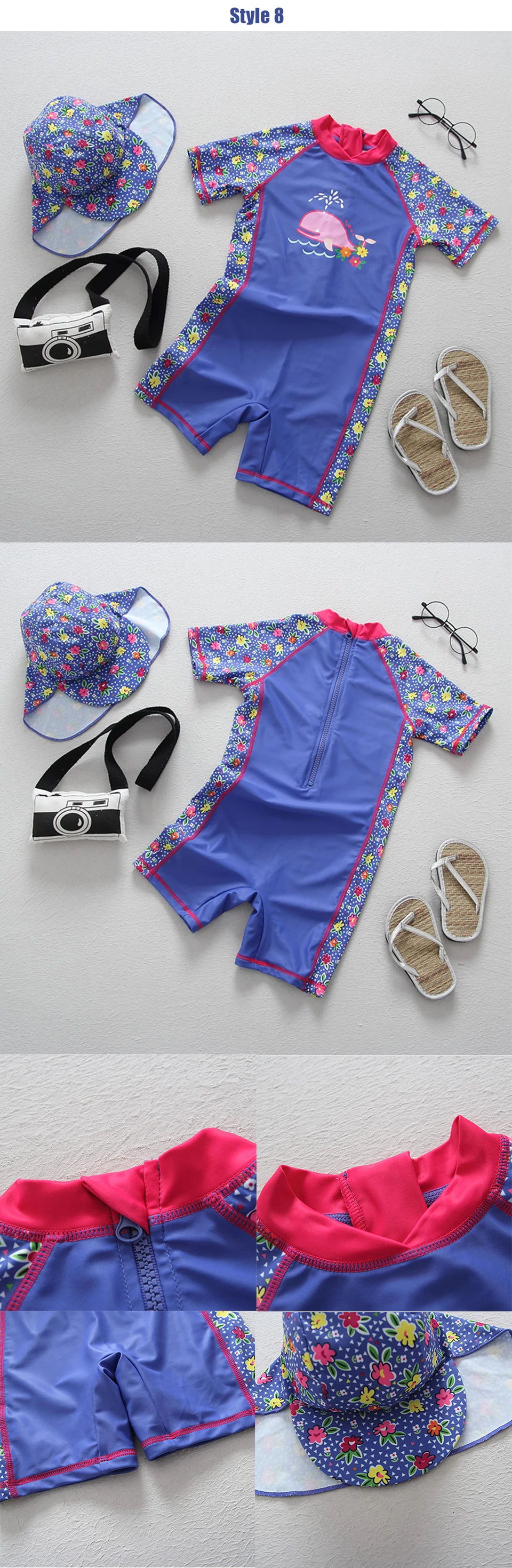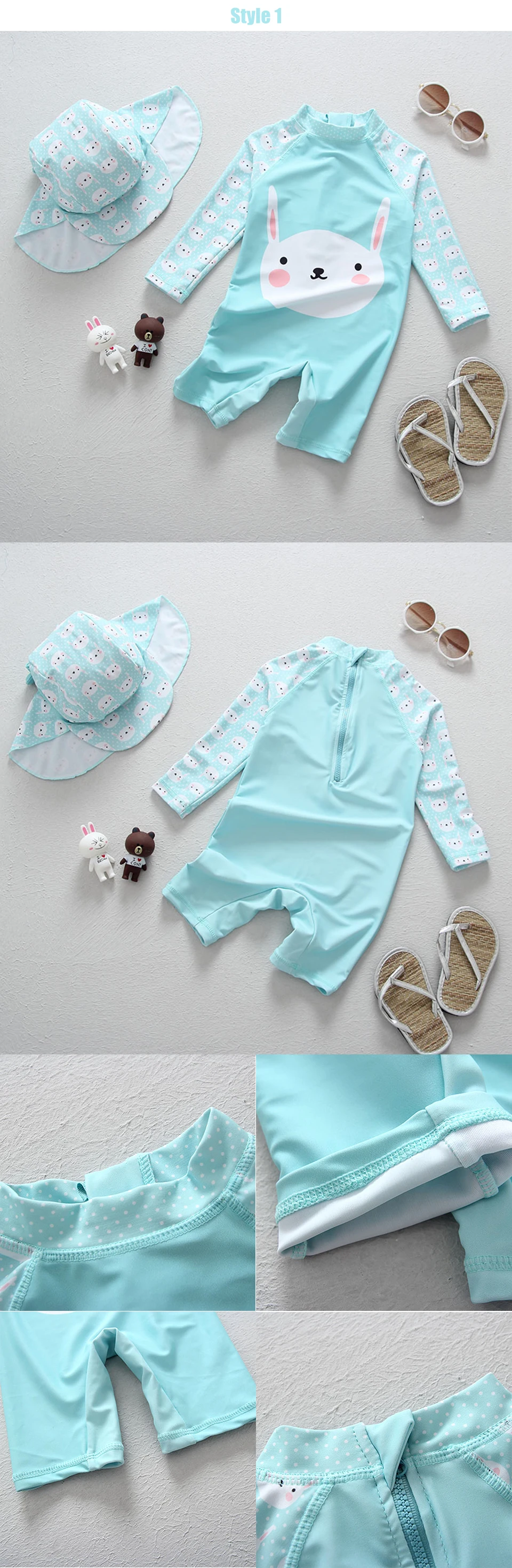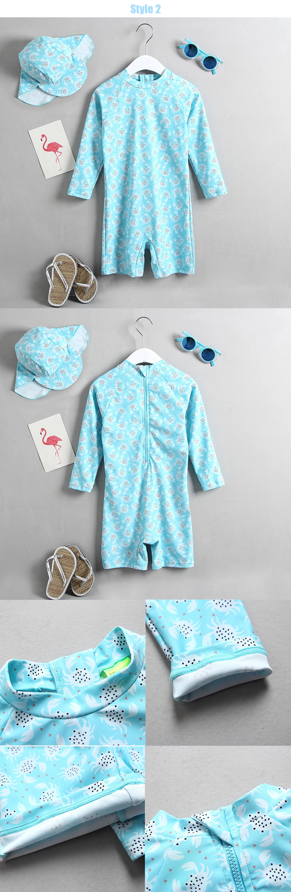 Детский слитный купальник для девочек с шапкой с длинными рукавами Защита от солнца UV 50 купальный костюм для младенцев детский купальник детский купальный костюм