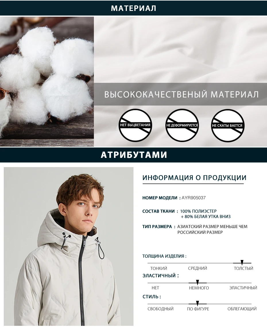 Пионерский лагерь 2020 Новая зимняя мужская легкая пуховая куртка теплая толстая зимняя куртка с капюшоном Высокое качество Мужская одежда айр905037