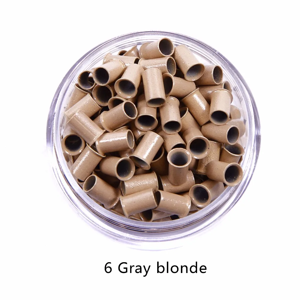 1000 шт., медные микробусины для наращивания волос, 3,4*3,0*6 мм