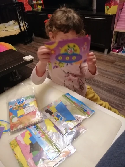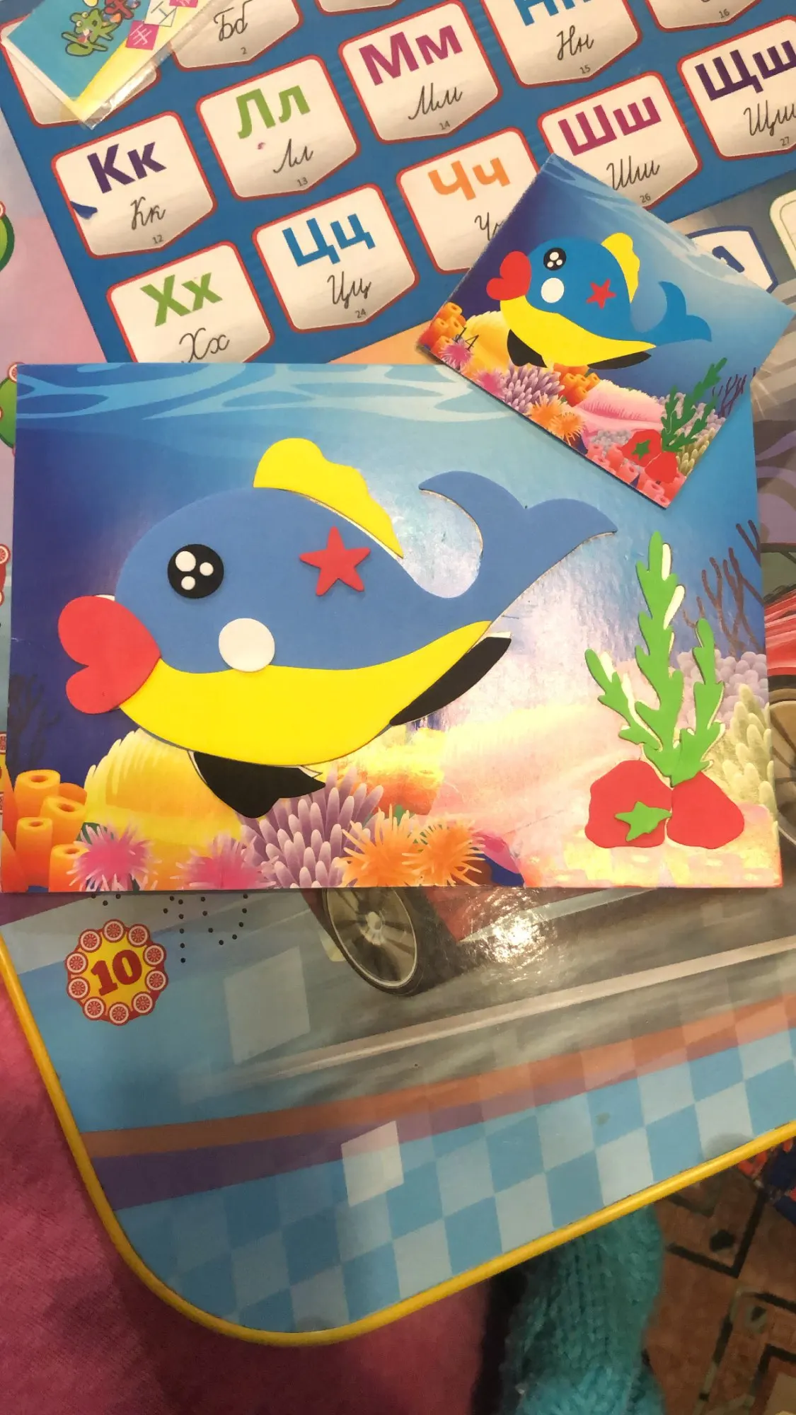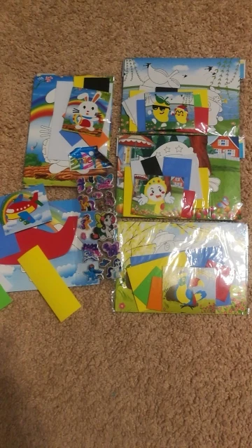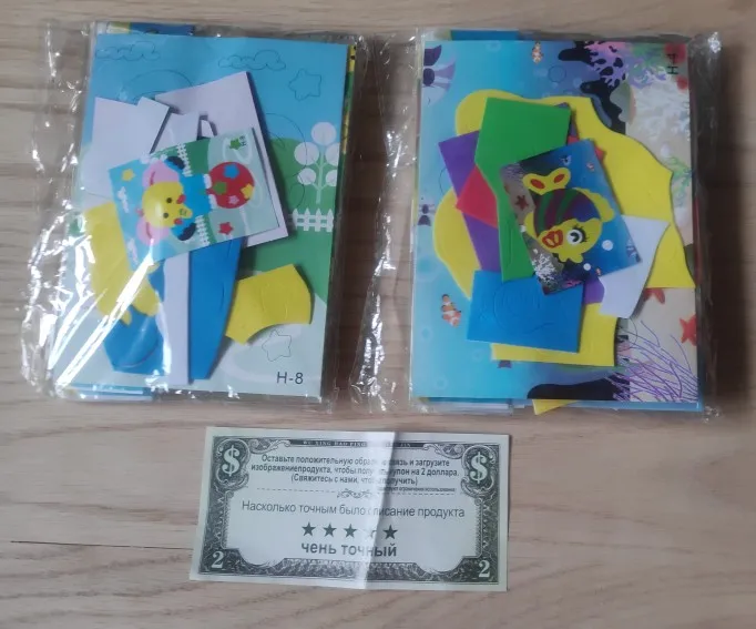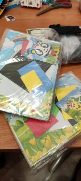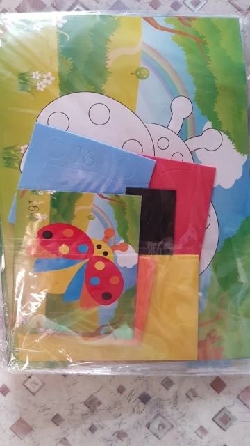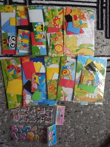 Года 4 назад покупала в другом магазине старшему сыну, сейчас ему 8, заказала младшему. Так старший говорит - я буду клеить, чтоб аккуратно было. Пришли некоторые повторки, но все равно интересно. Детали еще мягкие, толстенькие. Не только маленьким интересно. Так что берите и старшеньким))) Доставка месяц. В Узбекистан через Латвию. Советую аппликации. Ничего вырезать не надо, толькл клеить, как наклейки. Сначала большую часть, а потом мелкие детали на нее. Спасибо за подарочки. Две штуки наклейки мягкие подожили микки маус и пони + купон на скидку 2$. Спасибо большое вам.