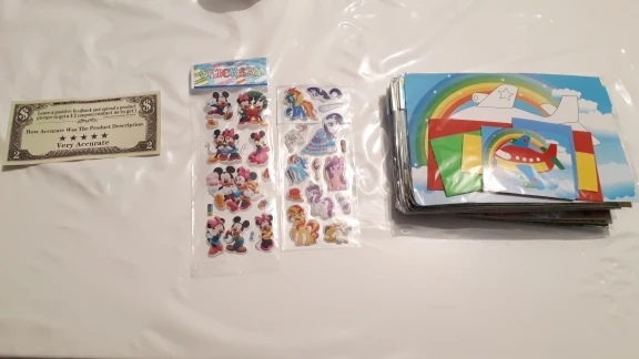 ждали слишком долго, больше трёх месяцев, но товар пришел, все в полном порядке, очень яркие и красивые картинки. продавец положил наклейки в подарок. дети в восторге. спасибо.