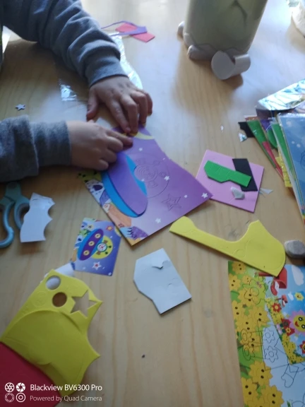 Аппликации маленькие (а5), клеить легко, но замороченно с выбором последовательности (что на заднем плане, что впереди). Ребенку 5 лет нравится