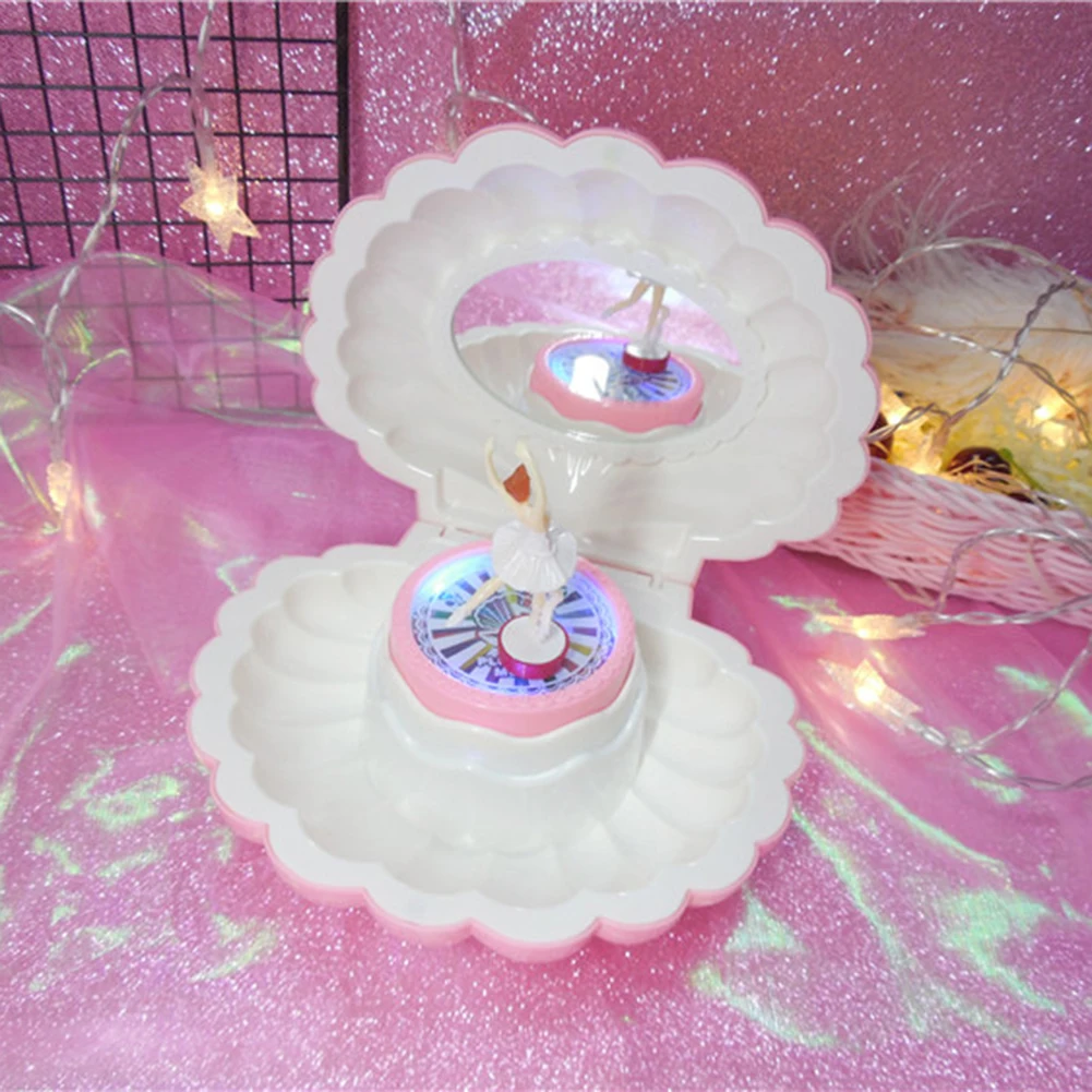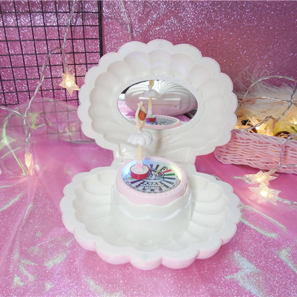 В форме ракушки вращающаяся девушка светодиодная мигающая музыкальная шкатулка музыкальная игрушка детский Рождественский подарок
