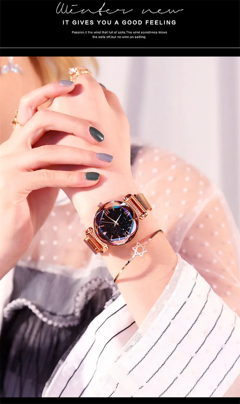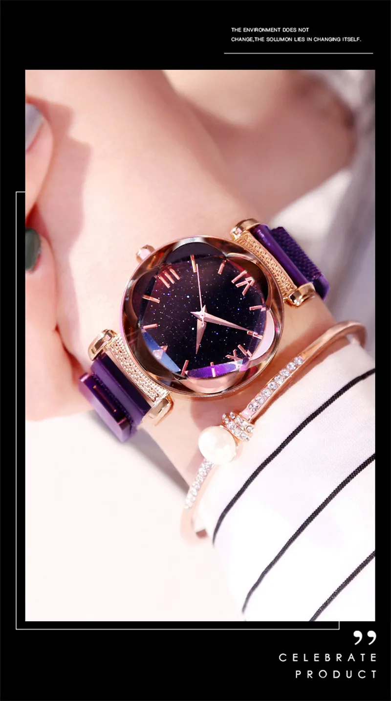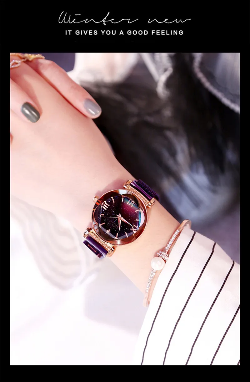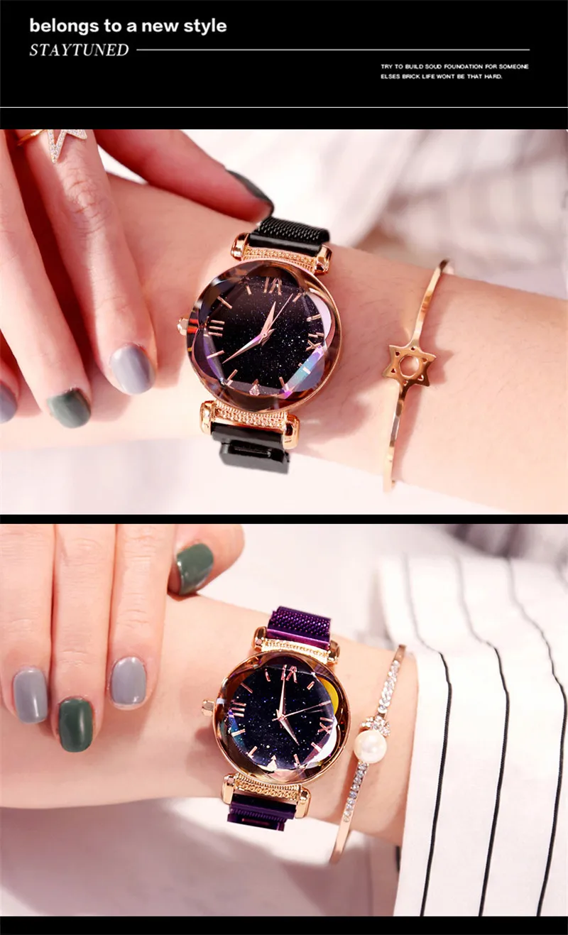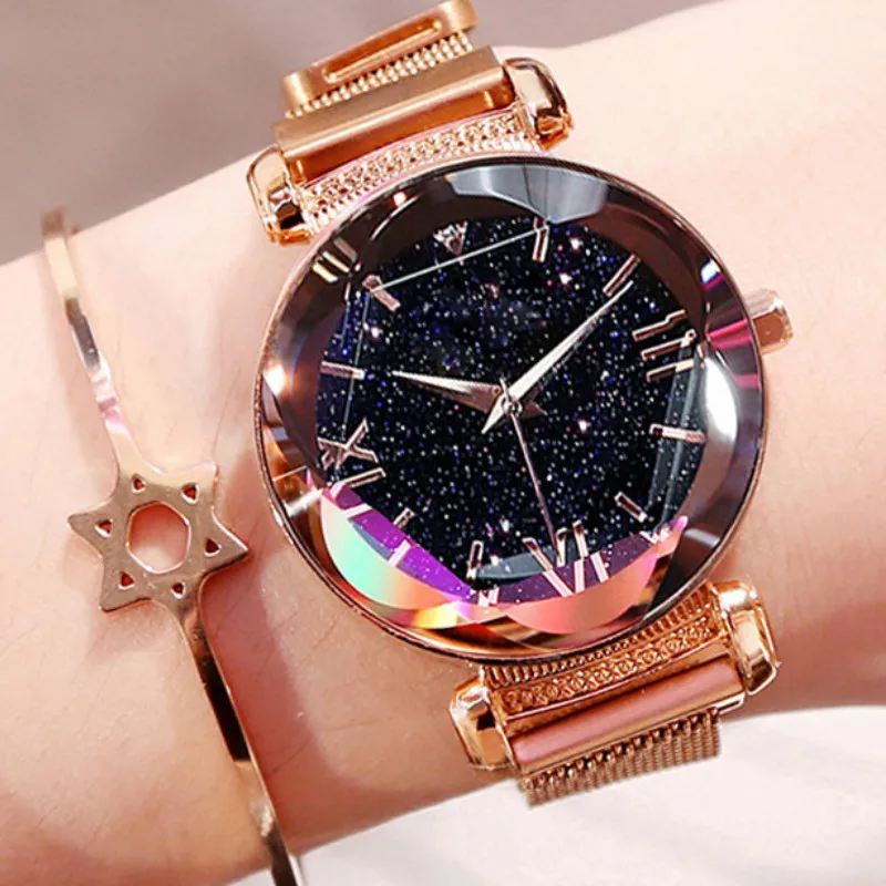 Роскошные часы из розового золота, модные женские часы с бриллиантами, магнитные часы звездного неба, водонепроницаемые женские наручные часы для подарка, D7